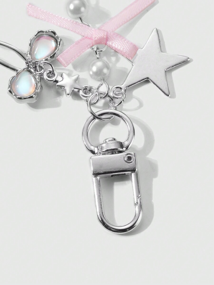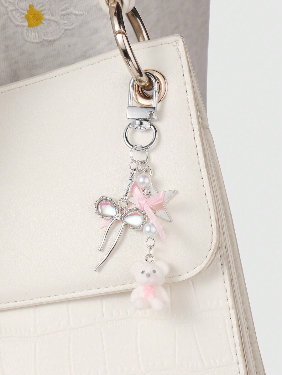 Kawaii 1 pezzo Portachiavi ciondolo a forma di orsetto con catena argento, fiocco, strass e perle finte nello stile minimalista elegante di Y2K, adatto come accessorio quotidiano da donna o come regalo festivo