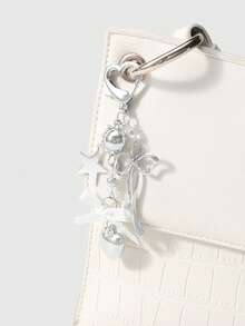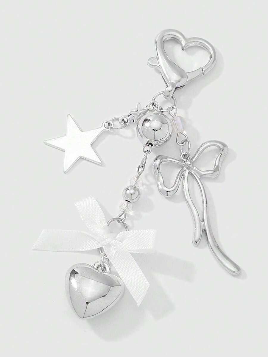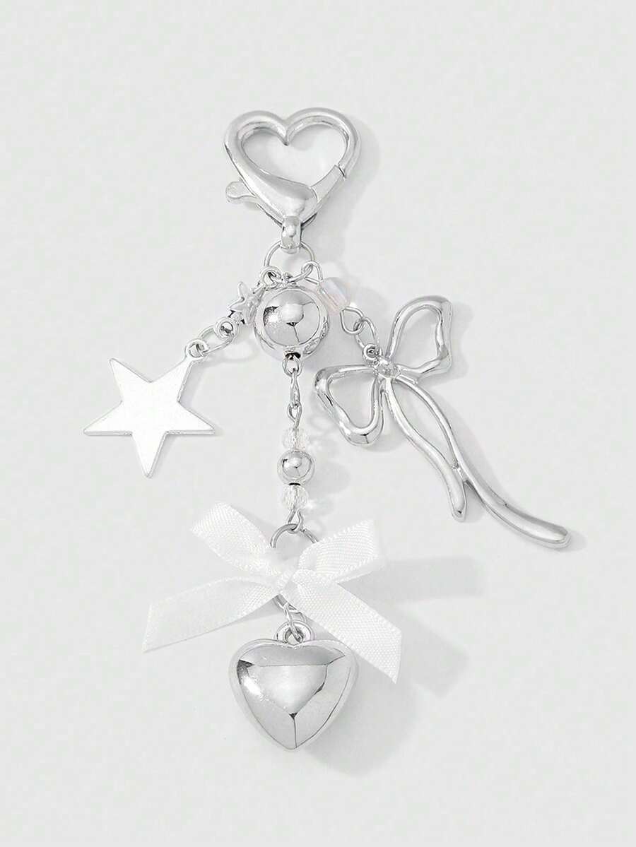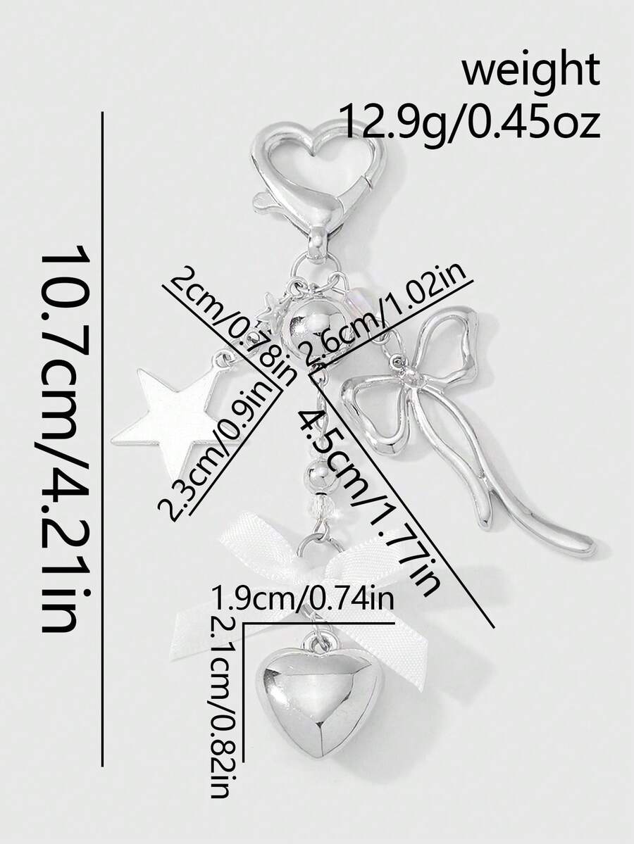 Kawaii 1 pezzo Portachiavi/ciondolo minimal in stile Y2K, in argento, con farfalla, perle finte, cuore cavo e fiocco intrecciato, adatto come accessorio per donne/ragazze per uso quotidiano o regalo per le vacanze