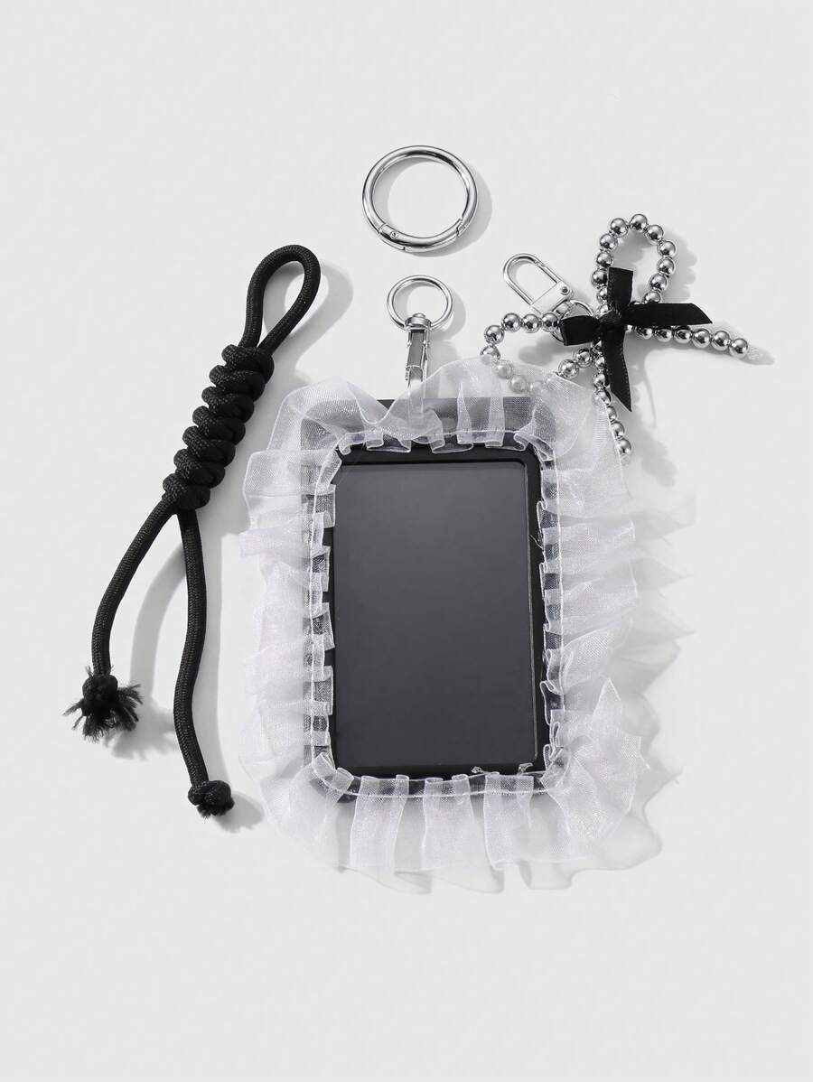 Kawaii 1 pezzo Portachiavi/pendente retrò stile gotico scuro Y2K in corda da arrampicata con nastrino in CCB lavorato a mano argentato, fiocco e pizzo bianco, adatto per lavoratori d'ufficio, studenti, uso quotidiano, regalo di vacanza