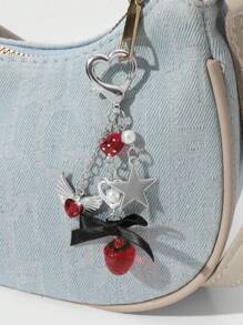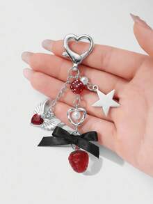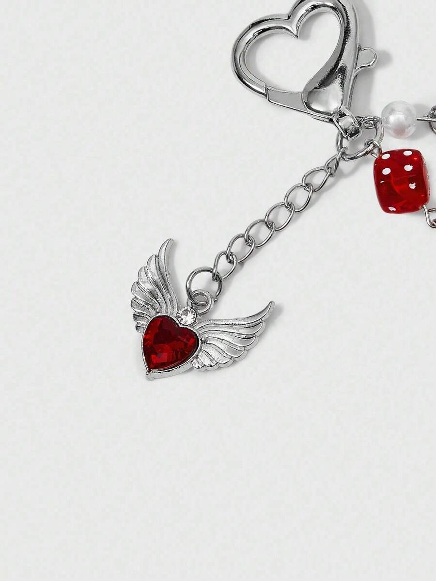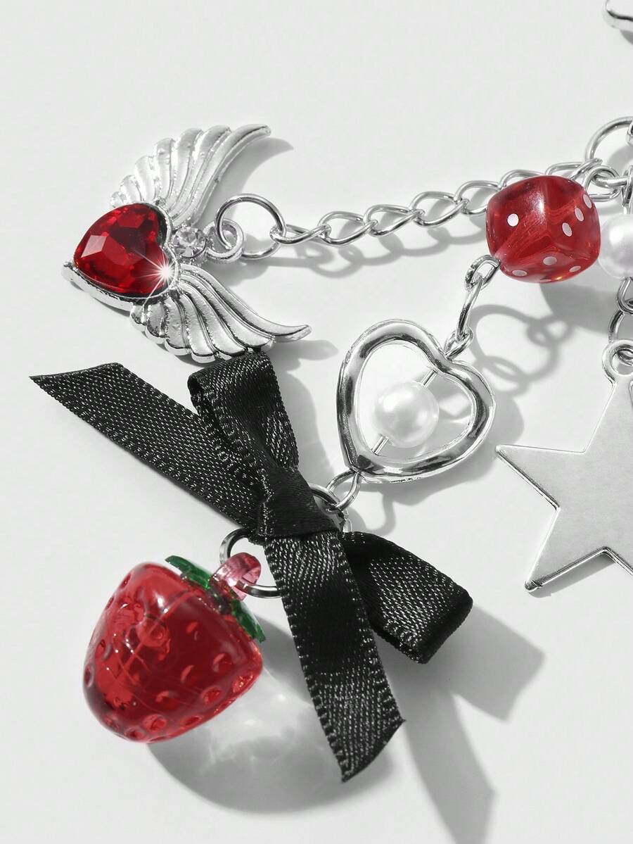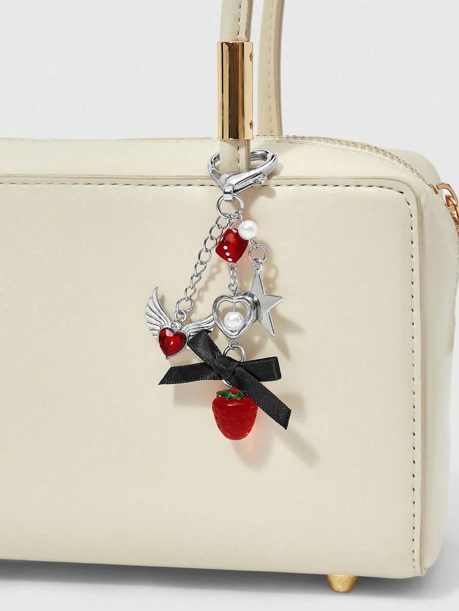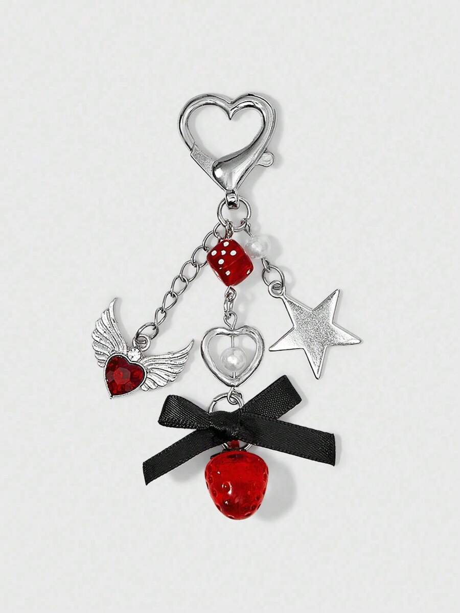 Kawaii 1 pezzo Portachiavi stile gotico alla moda Y2K, con catena d'argento, ali, cuore di cristallo, fiocco e fragola in resina, adatto per uso quotidiano di donne/ragazze, regalo per vacanze, Ognissanti