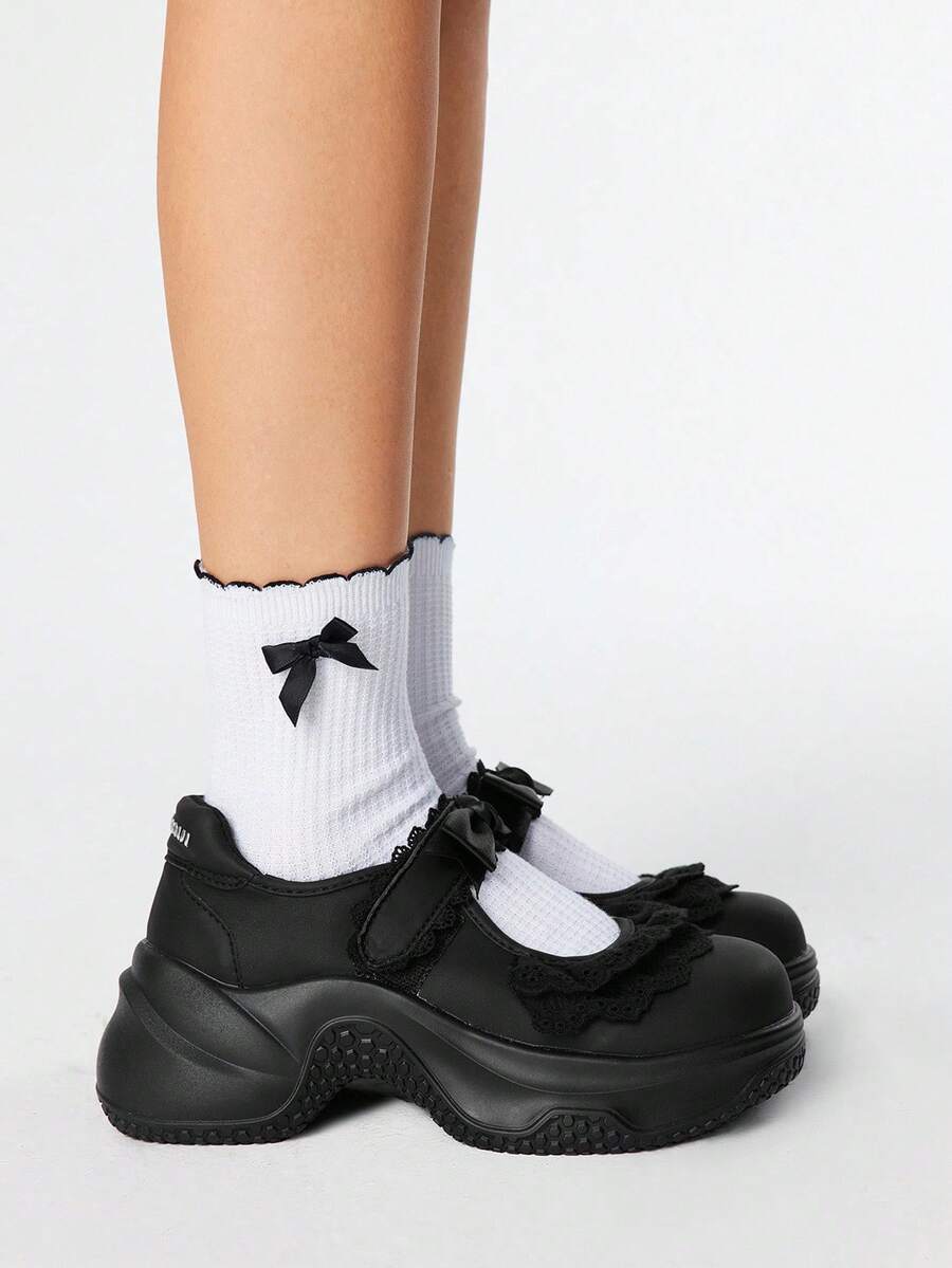 Kawaii Scarpe Mary Jane di stile cinese nuovo del 2025 con suole spesse, di stile vintage nazionale, bordo floreale, Scarpe da principessa Lolita dolci e carine con platform
