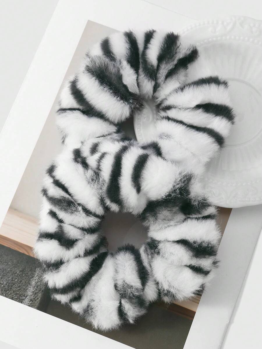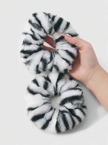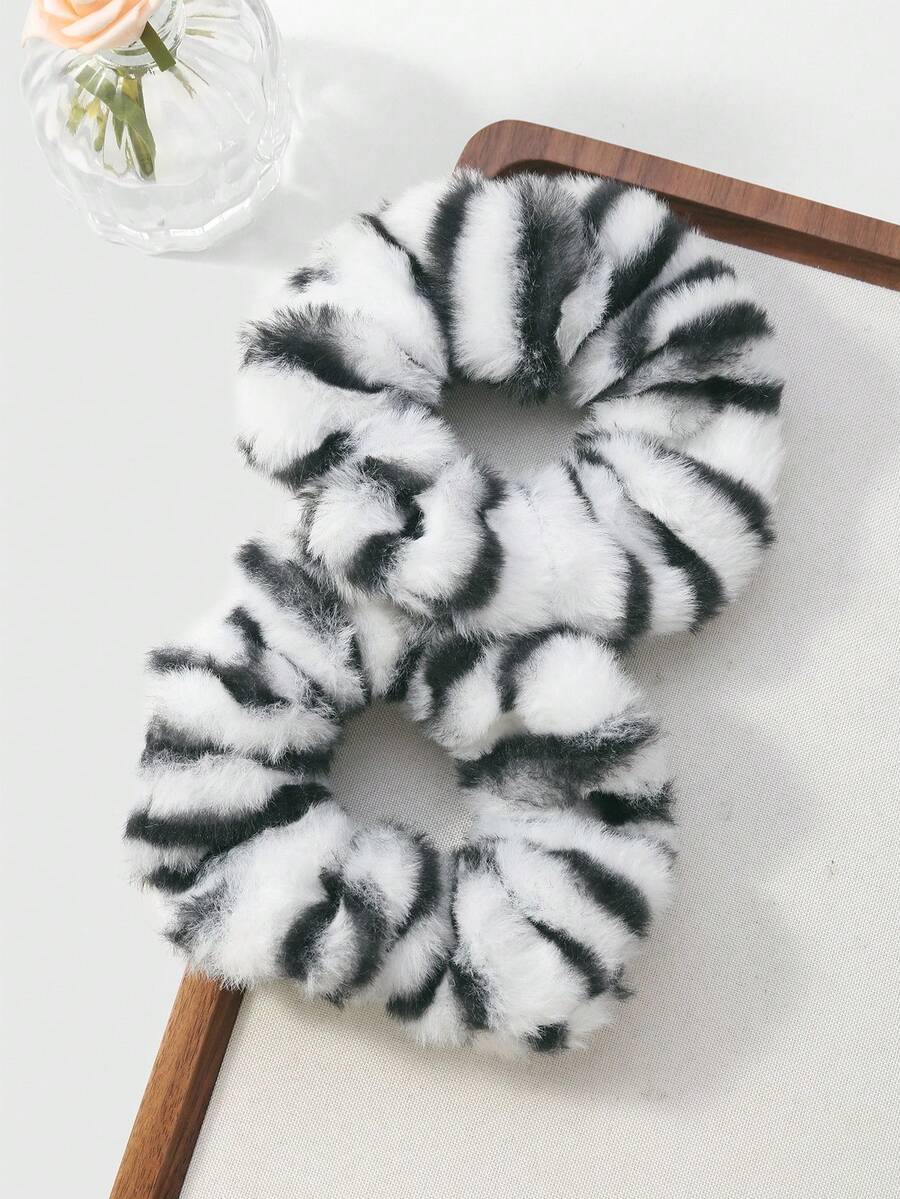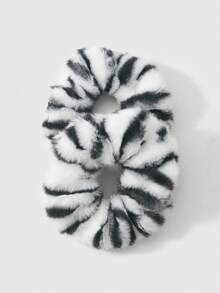 Kawaii 2 pezzi Set di scrunchie morbidi e alla moda in stile retrò, stampa leopardata in bianco e nero di alta qualità, combinazione versatile adatta per le donne, per uso quotidiano o come regalo