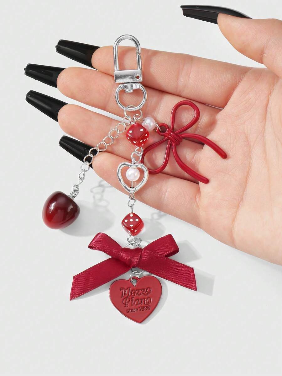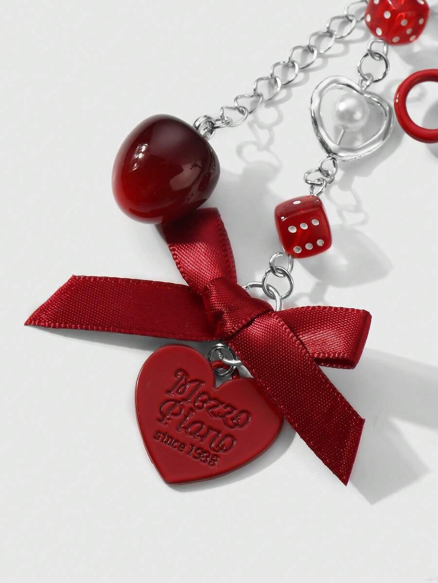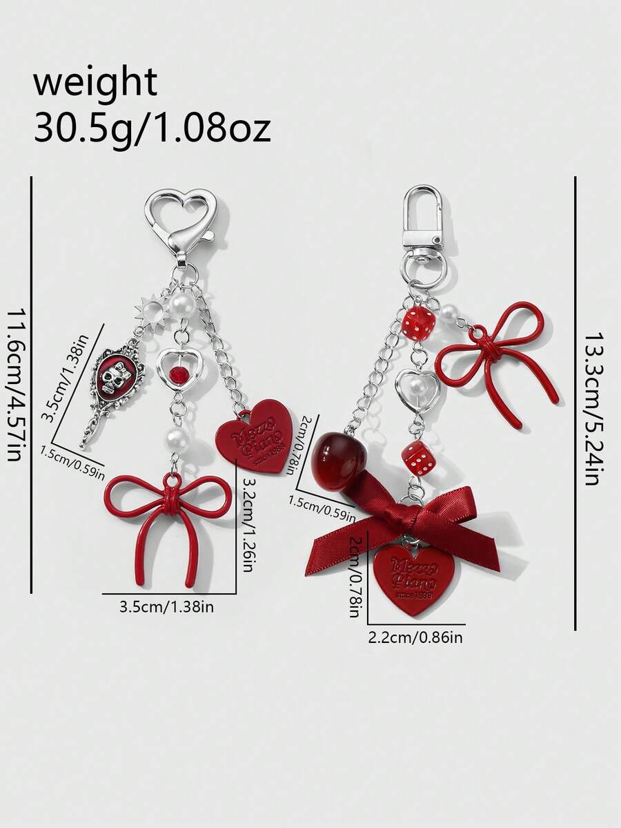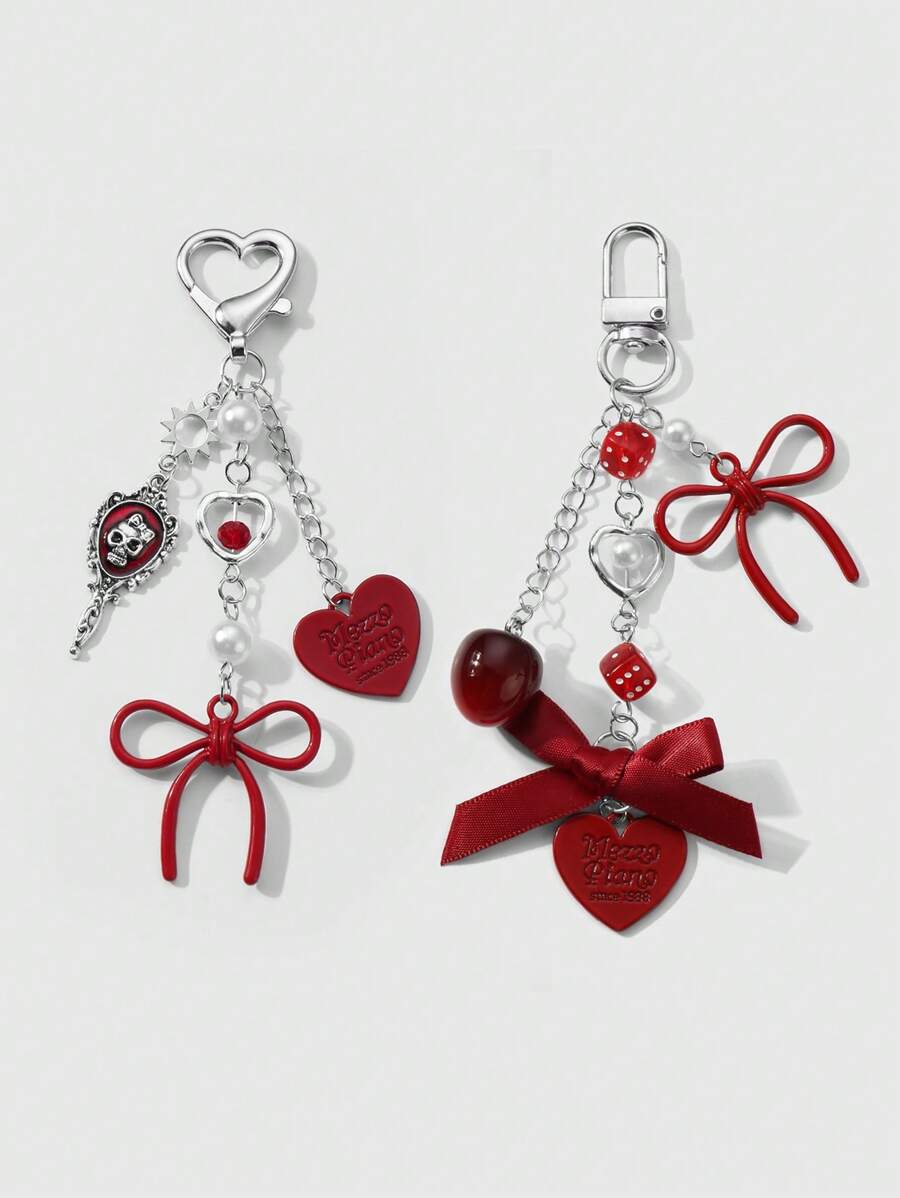 Kawaii Set regalo di 2 pezzi di ciondoli alla moda in acrilico, con collana in argento, fiocco, lettera, cuore, dadi, teschio, specchio, perla, decorazioni a forma di ciliegia, adatto a ragazze, amici, coppie, per uso quotidiano o come regalo per le festività