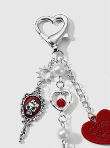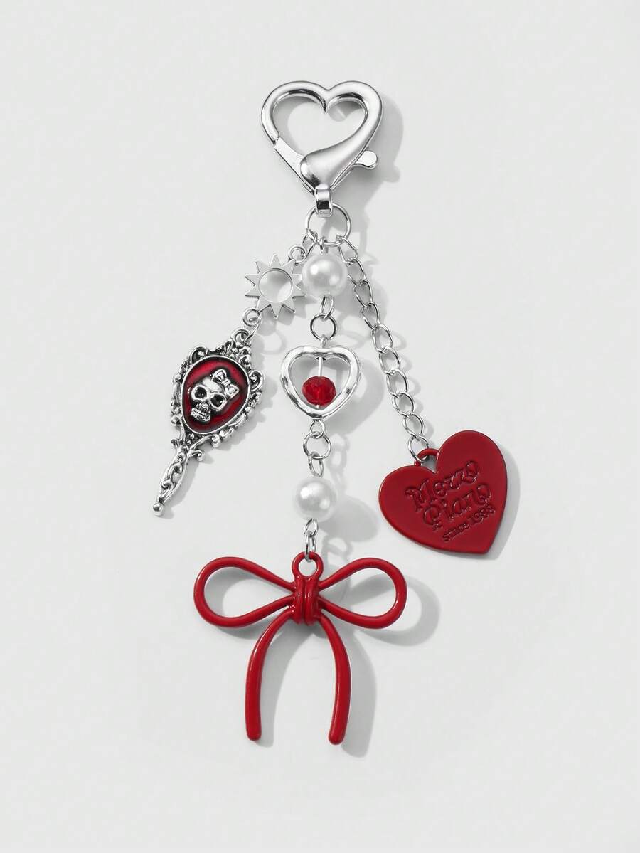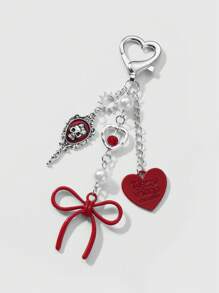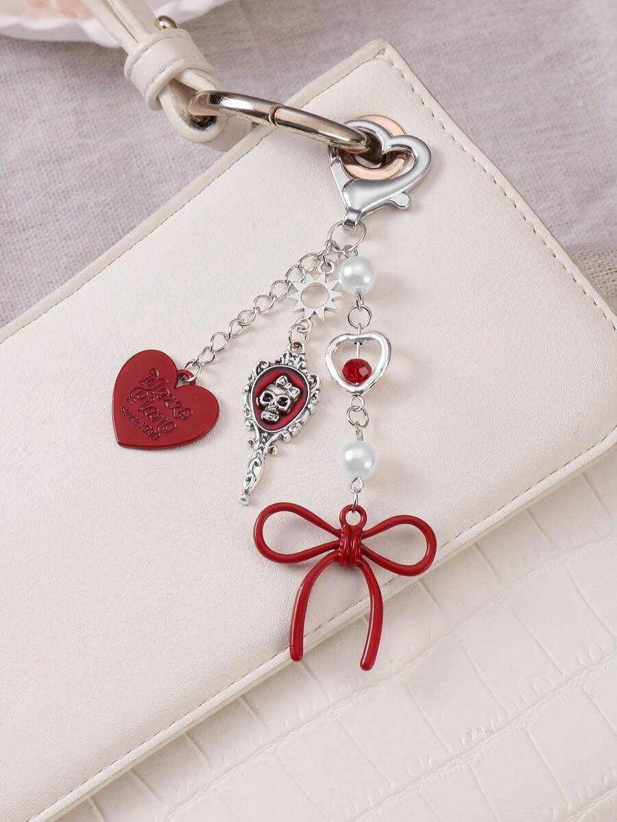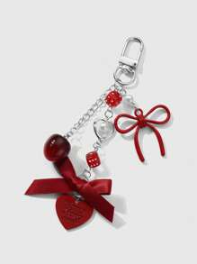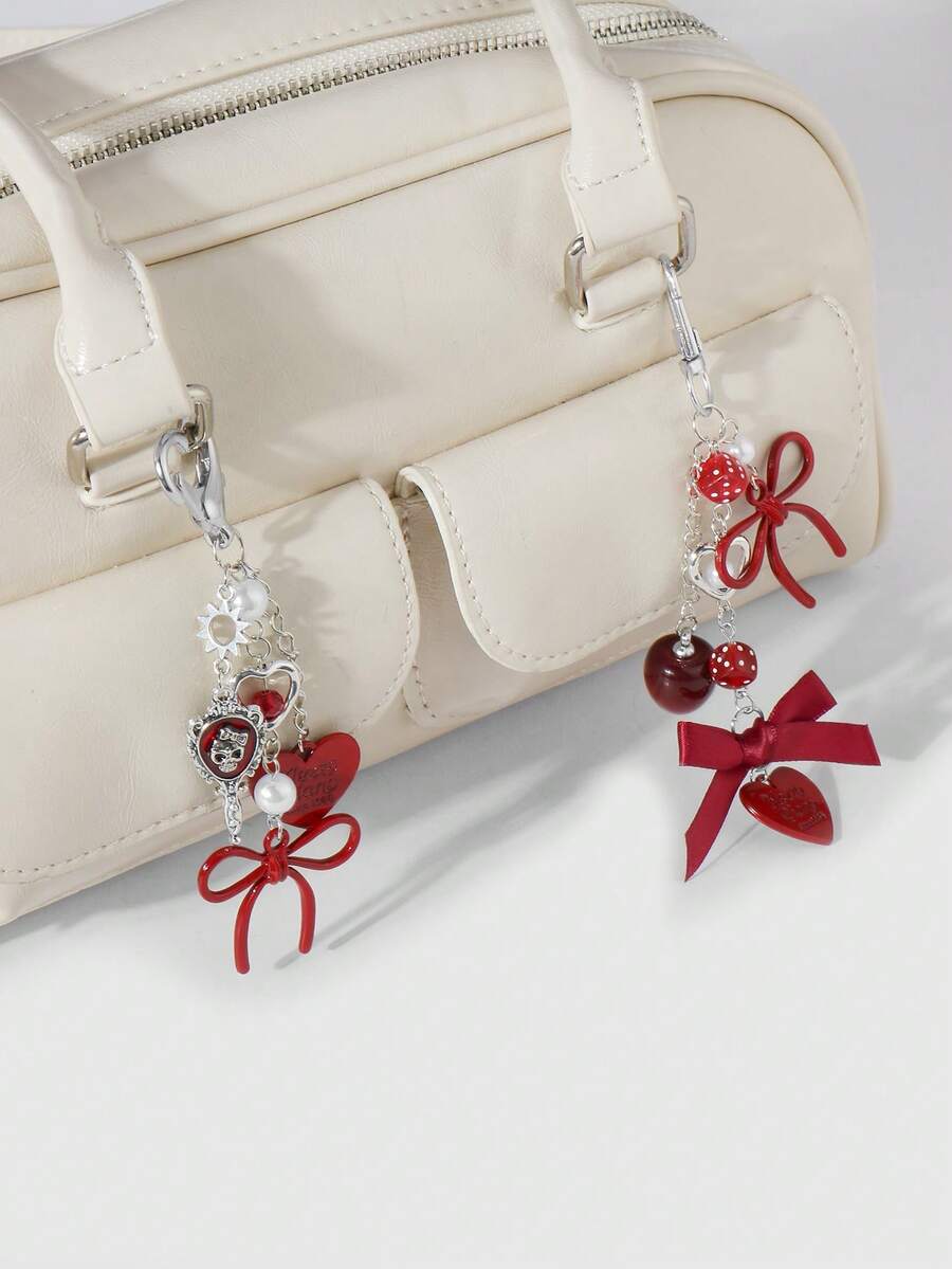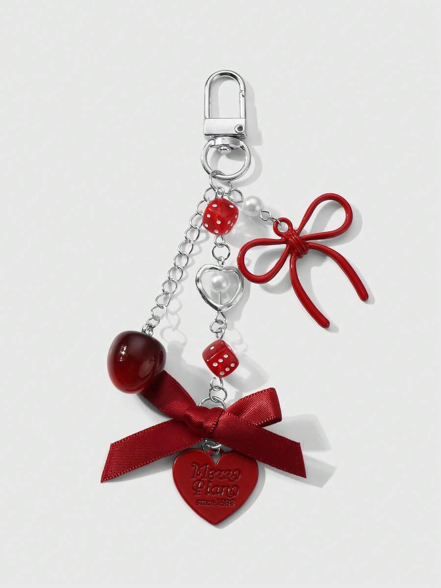 Kawaii Set regalo di 2 pezzi di ciondoli alla moda in acrilico, con collana in argento, fiocco, lettera, cuore, dadi, teschio, specchio, perla, decorazioni a forma di ciliegia, adatto a ragazze, amici, coppie, per uso quotidiano o come regalo per le festività