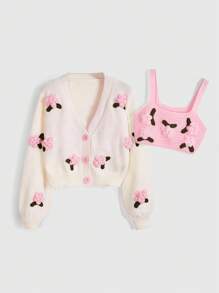 Kawaii 2 pezzi - Set di canottiera e cardigan con rose all'uncinetto per donne