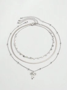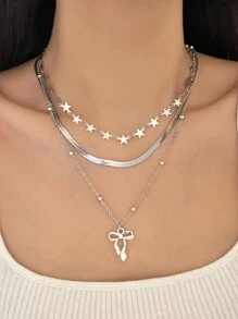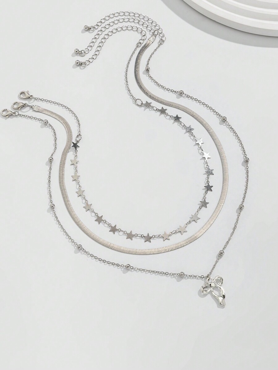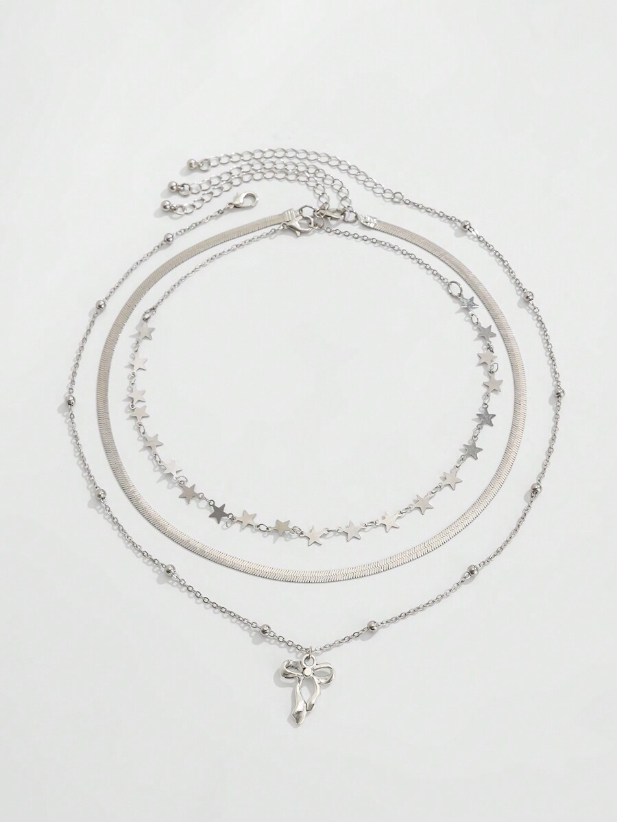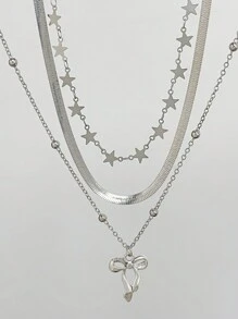 Kawaii Set di 3 collane di moda con ciondolo a fiocco e a stella