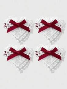 Kawaii 4 pezzi Set combinato di fermagli per capelli retrò alla moda di alta qualità, fiocco rosso, cuore bianco cavo, adatto per donne e ragazze, per uso quotidiano e come regalo per le vacanze