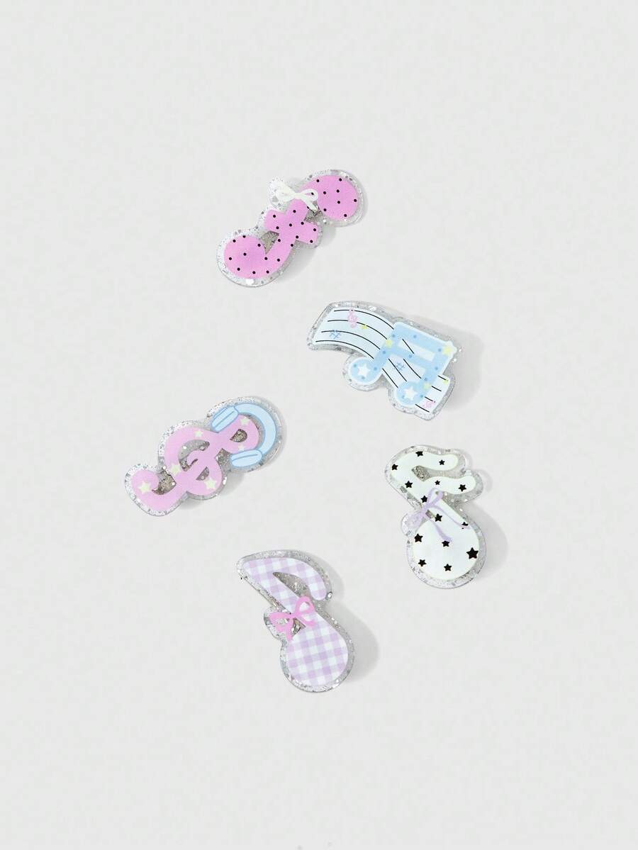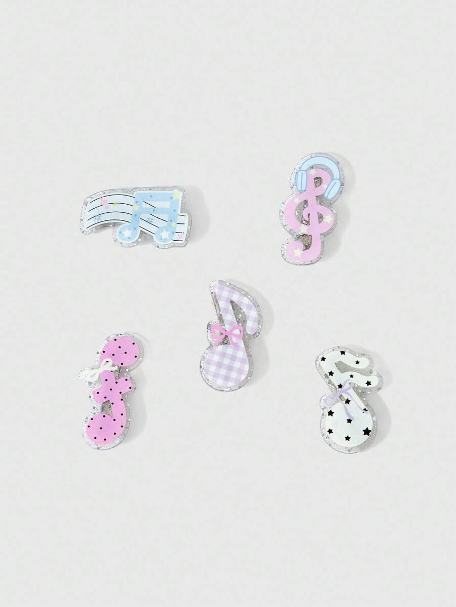 Kawaii 5 pezzi di fermagli per capelli a forma di nota musicale casuali e carini, fermagli a fiocco a pois a forma di anatra a cartone animato in stile Y2K, accessori per capelli di moda versatili