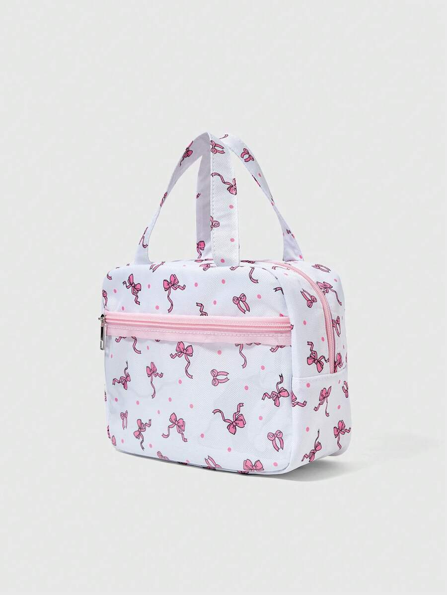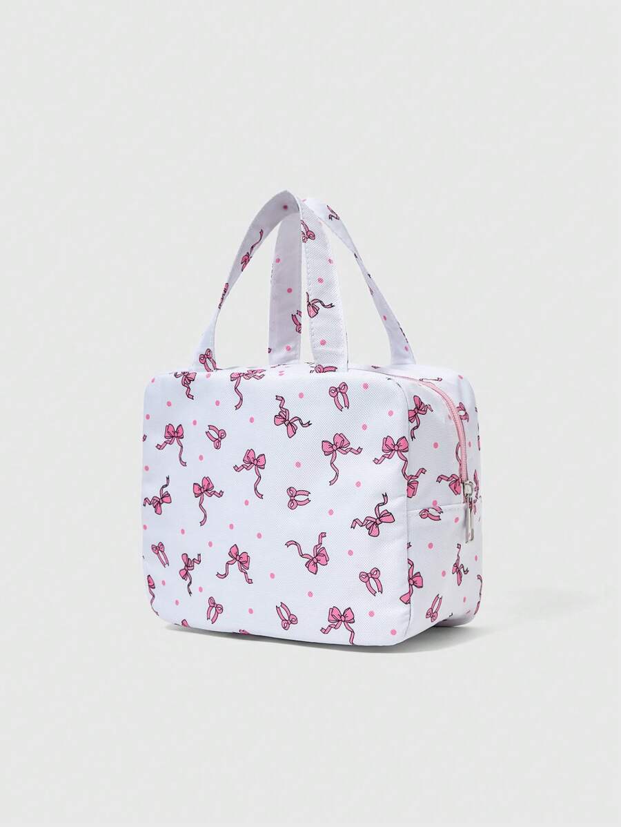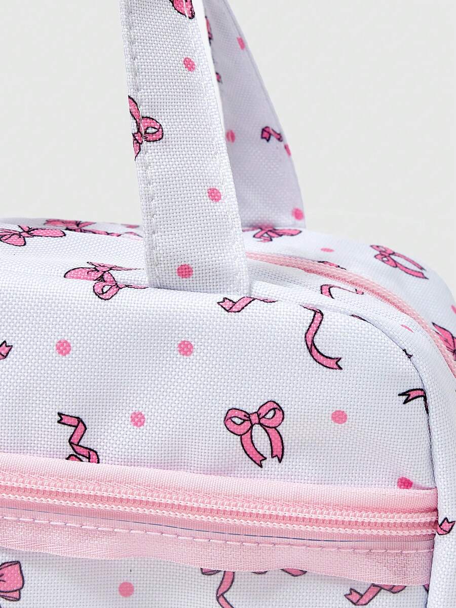 Kawaii Borsa da donna alla moda, portatile e carina, con stampa all-over a pois e fiocchi