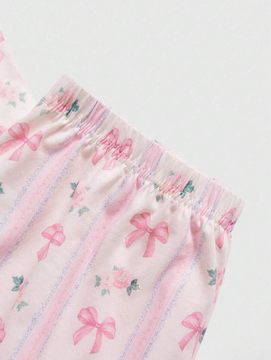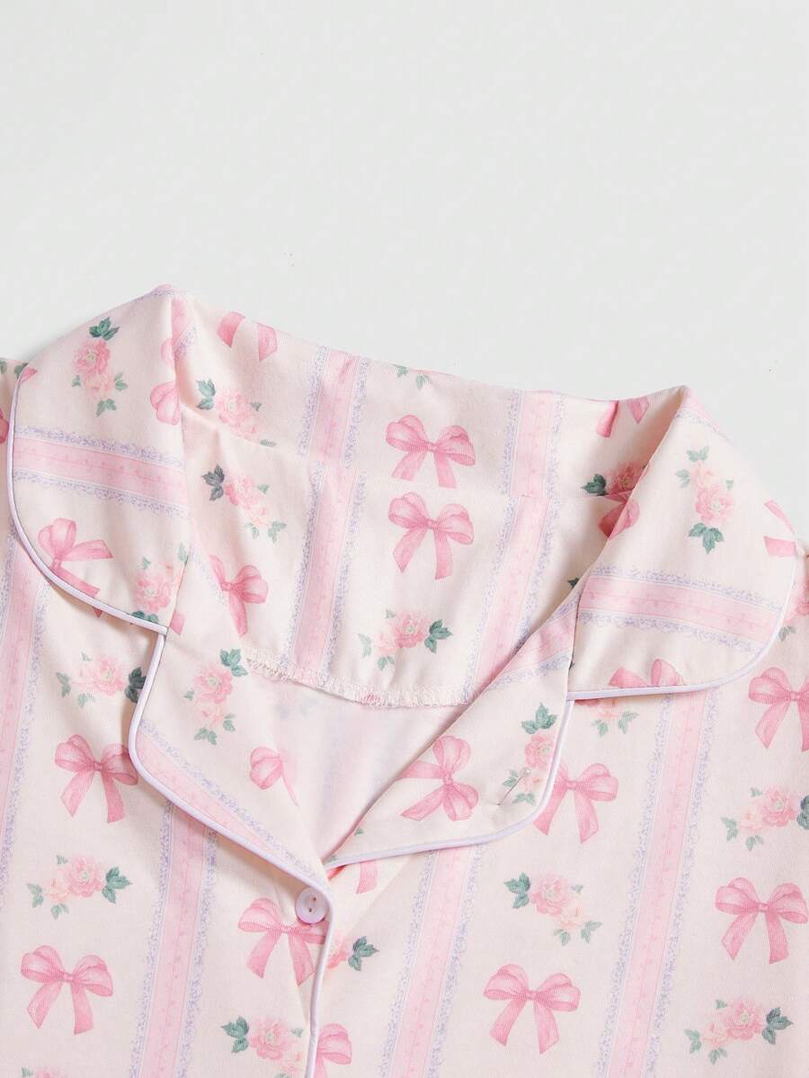 Kawaii Set pigiama con top con bottoni e pantaloni, stampa all-over, adatto per la scuola, abbigliamento autunno-inverno