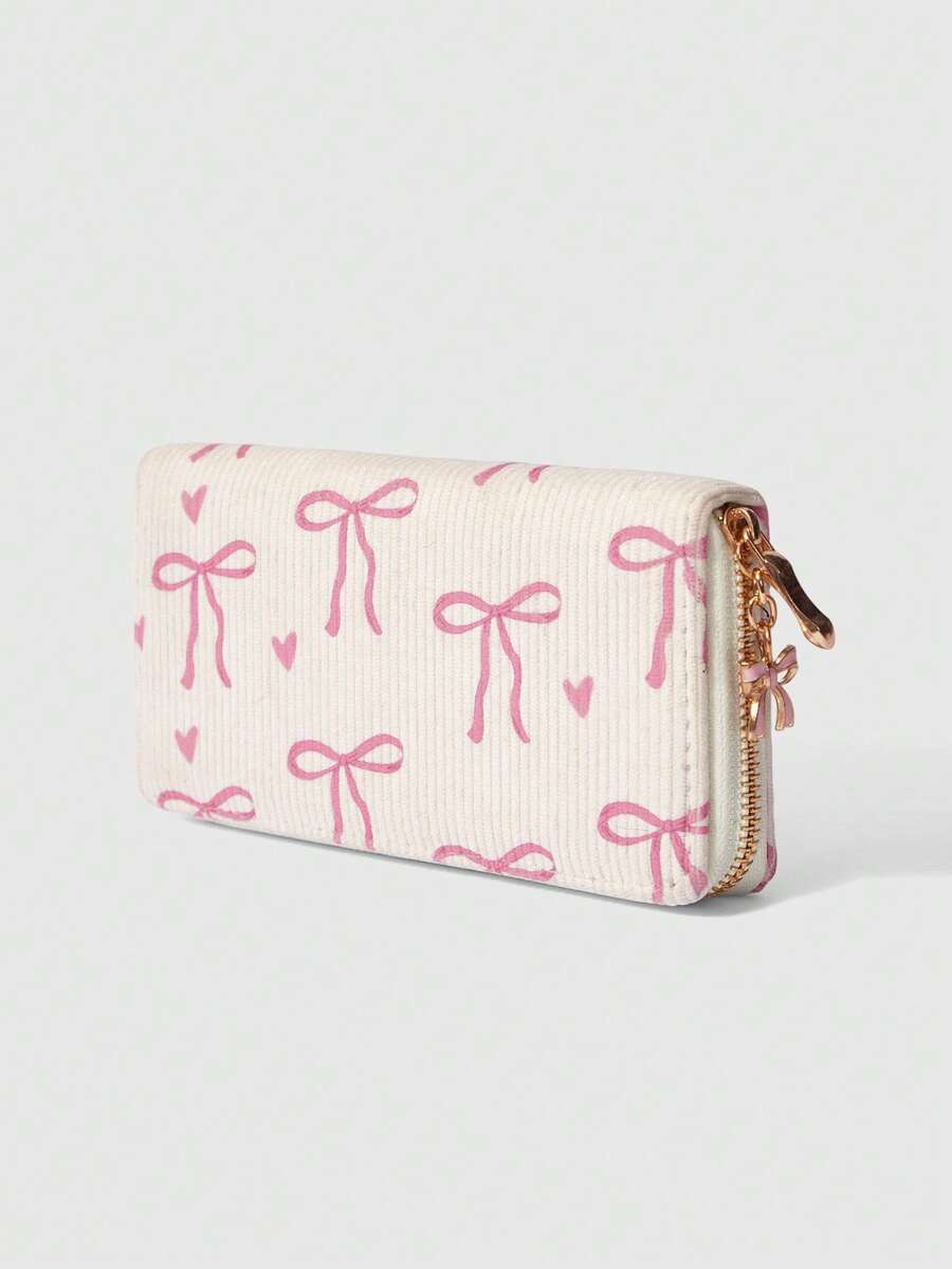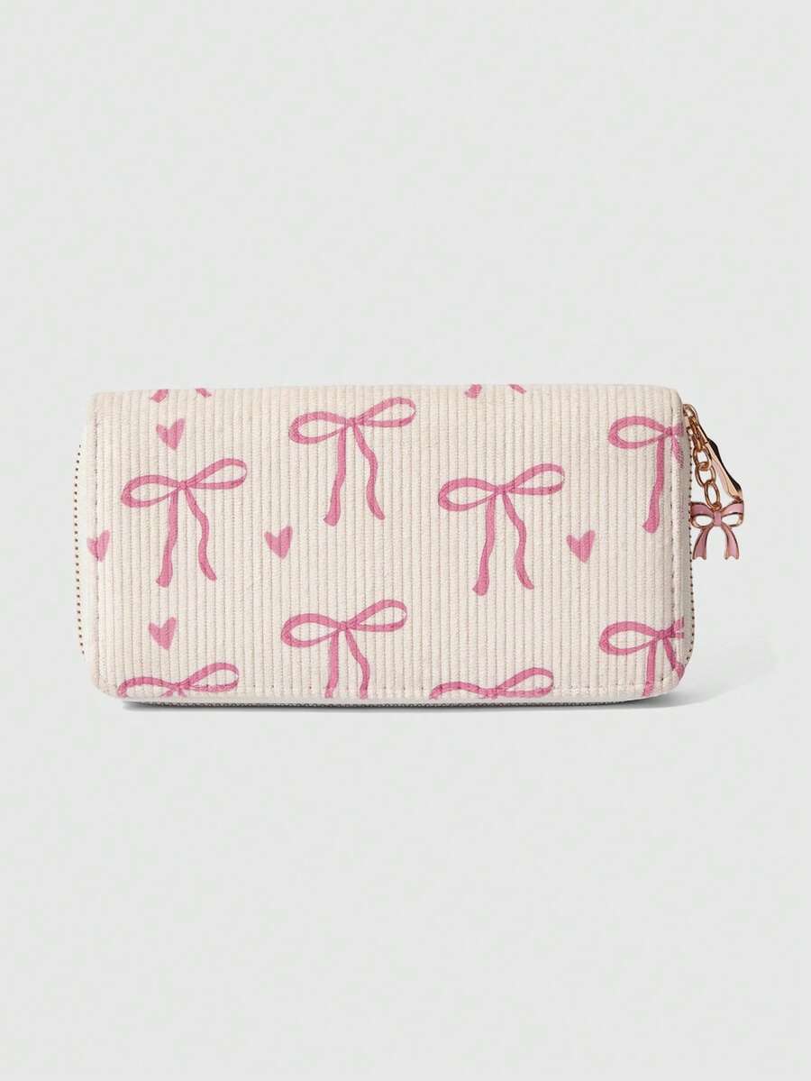 Kawaii Portafoglio corto in velluto rosa con fiocco, adatto per autunno e inverno