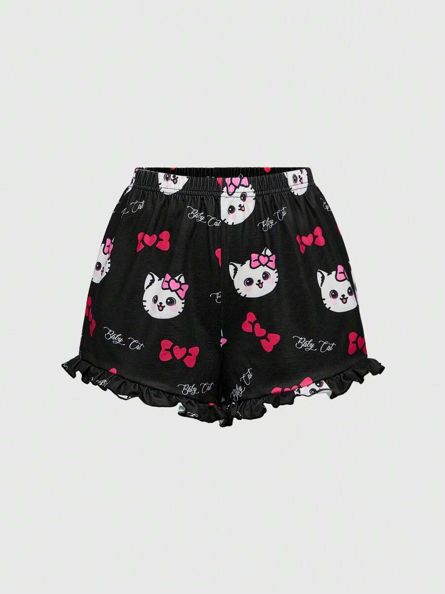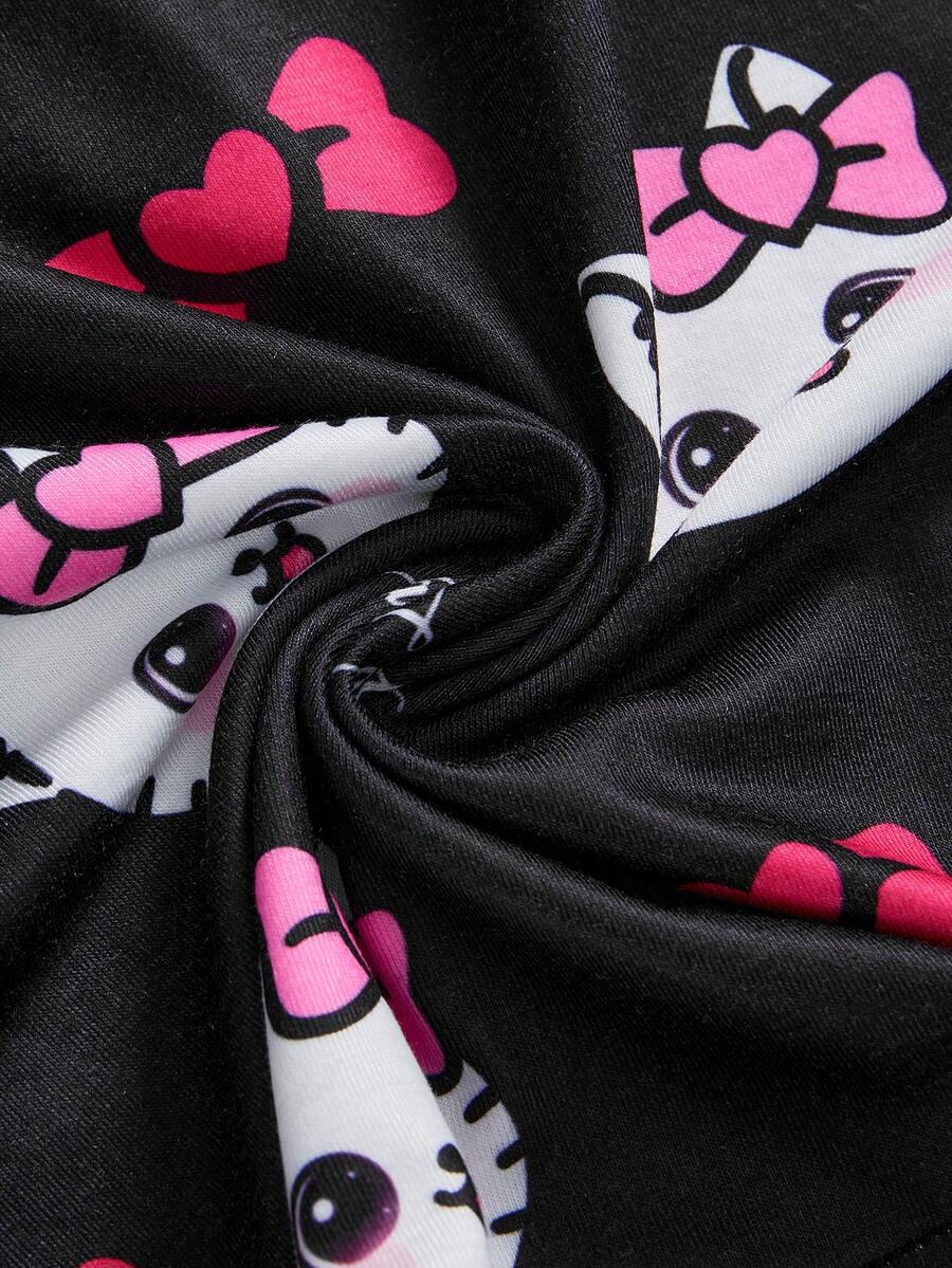 Set di pigiama casual da donna con gatto kawaii e fiocco