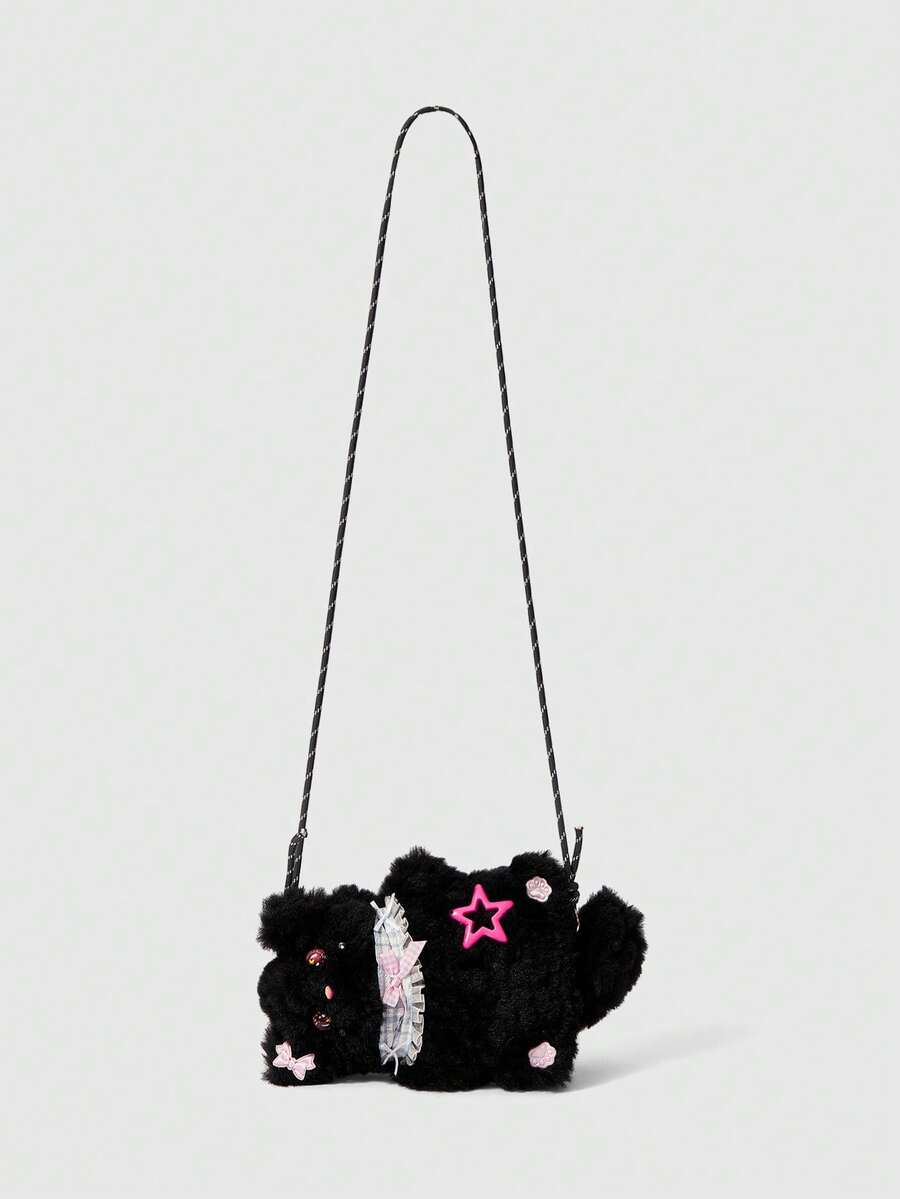 Kawaii Borsa a tracolla nera in peluche con pizzo a forma di stella e gatto