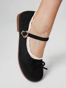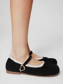 Kawaii Mocassini marroni con punta chiusa, scarpe in pelle Mary Jane, ballerine Lolita con fiocco per donne
