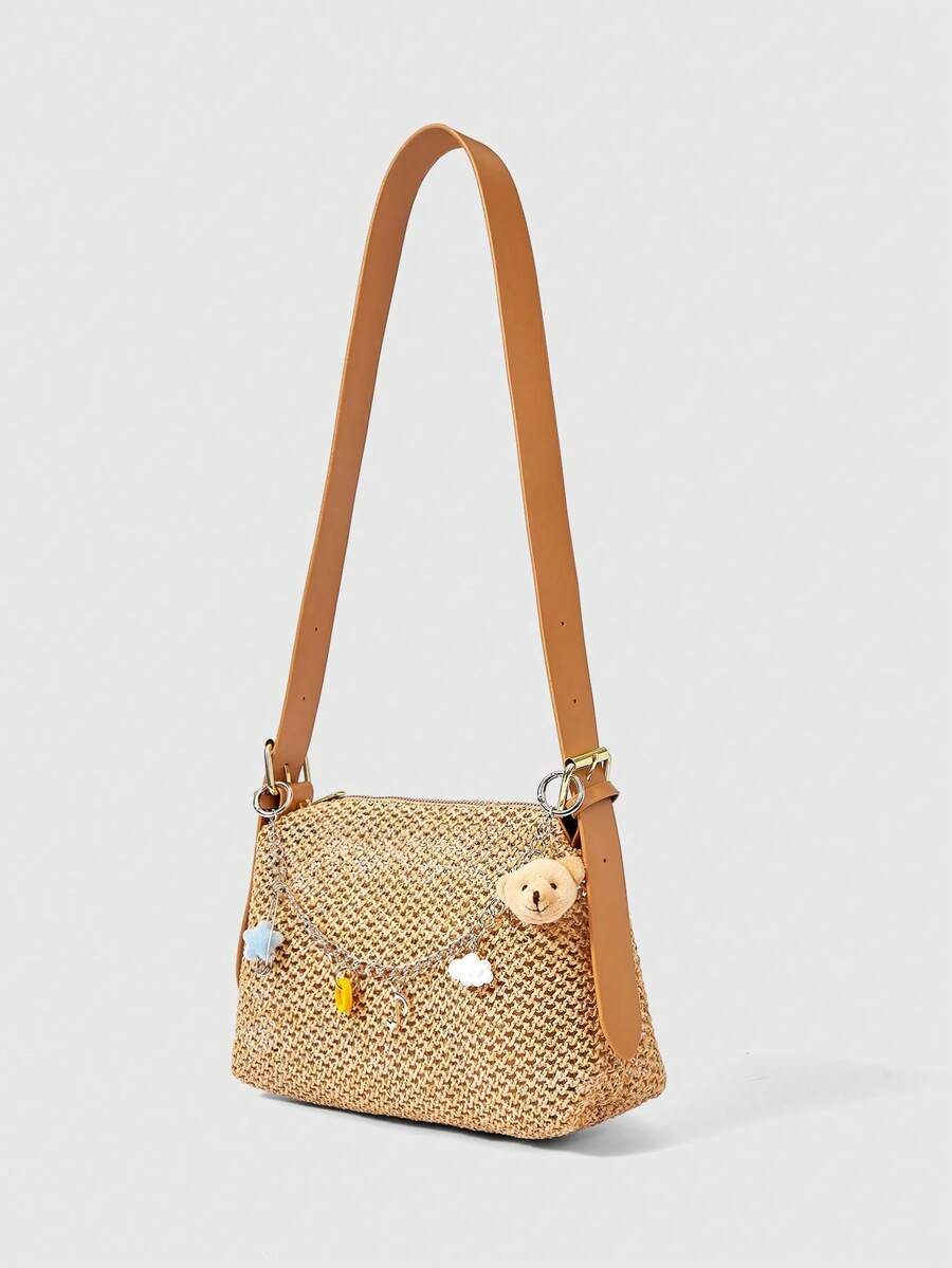 Kawaii Borsa intrecciata con cordino, scatola quadrata marrone