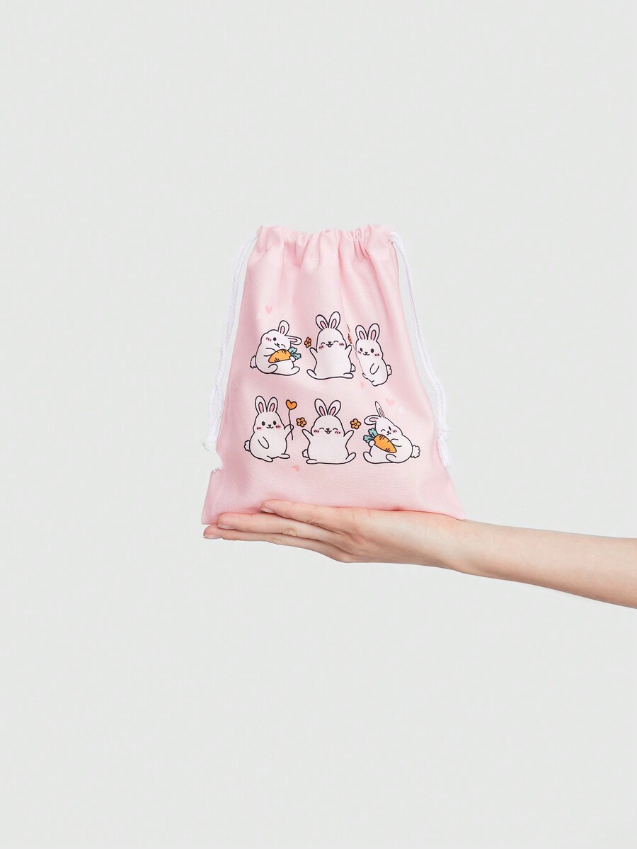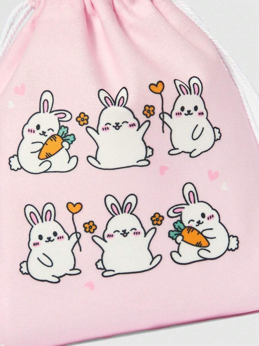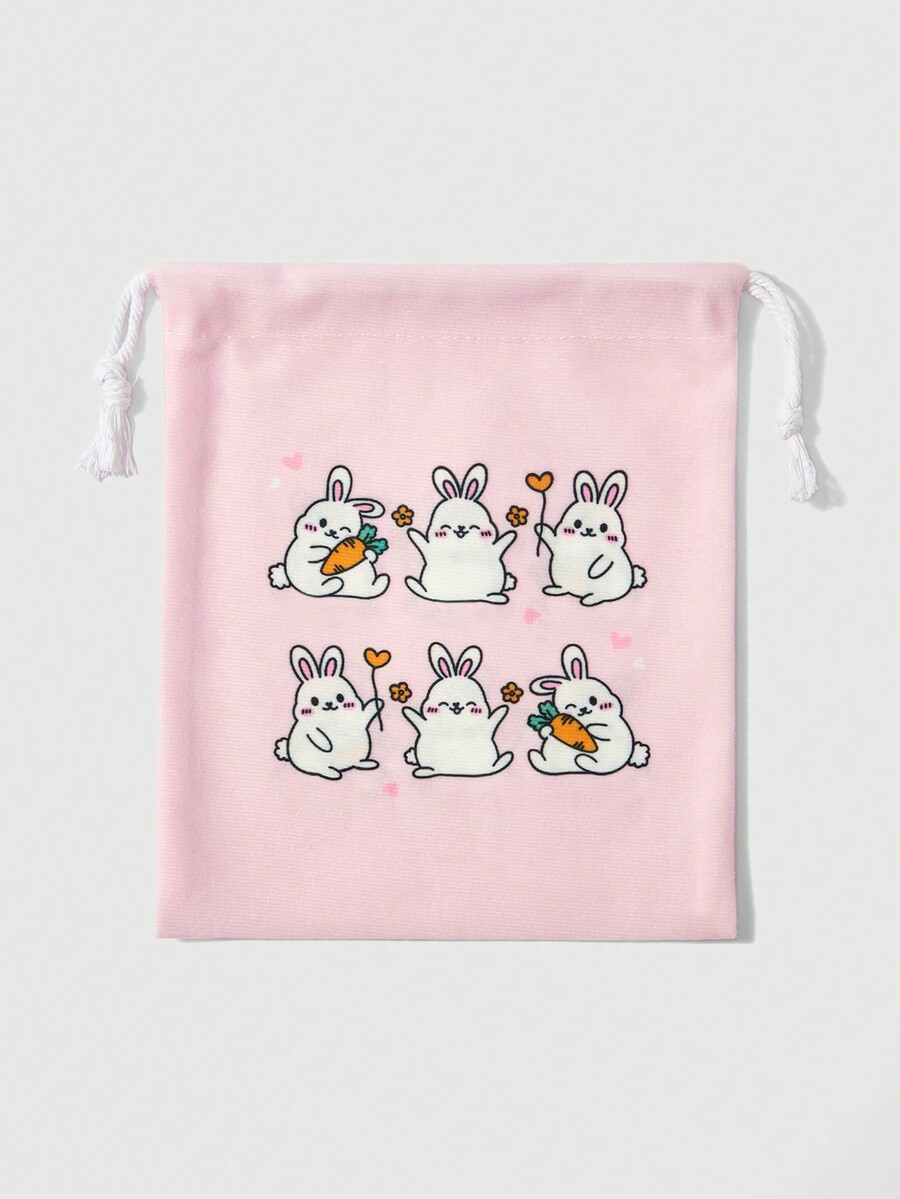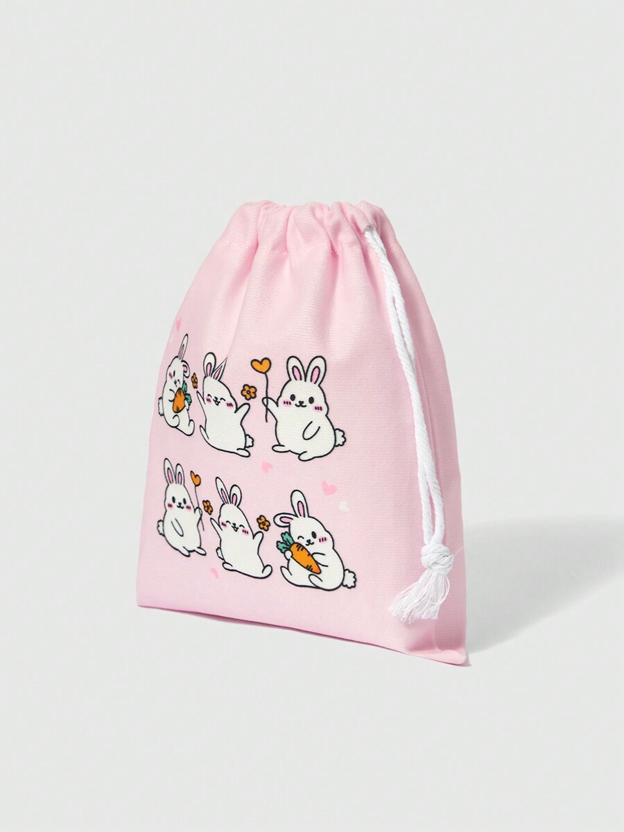 Kawaii Borsa Di Storage Portabile A Grande Capacità Con Coulisse Dal Design Di Coniglio Animato Carino, Organizzatore Di Trucco