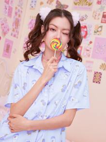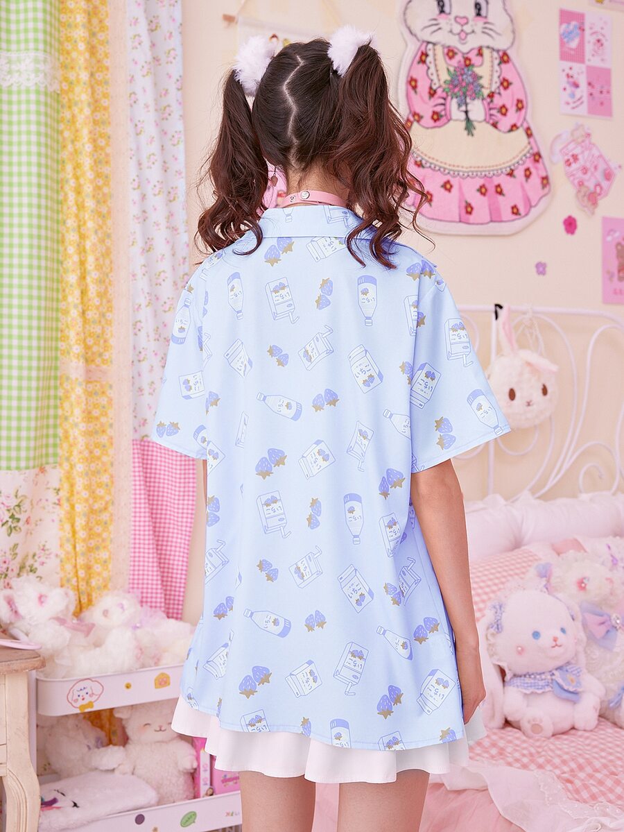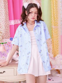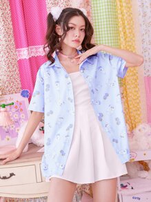 Kawaii Camicia con grafica fumetto con bottone frontale