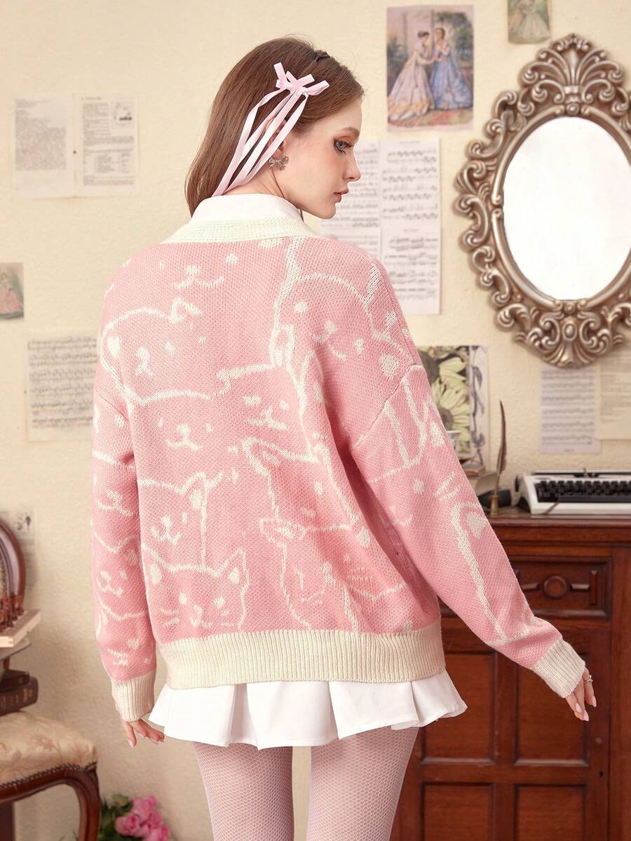Kawaii Cardigan con modello di cartone animato spalle cadenti