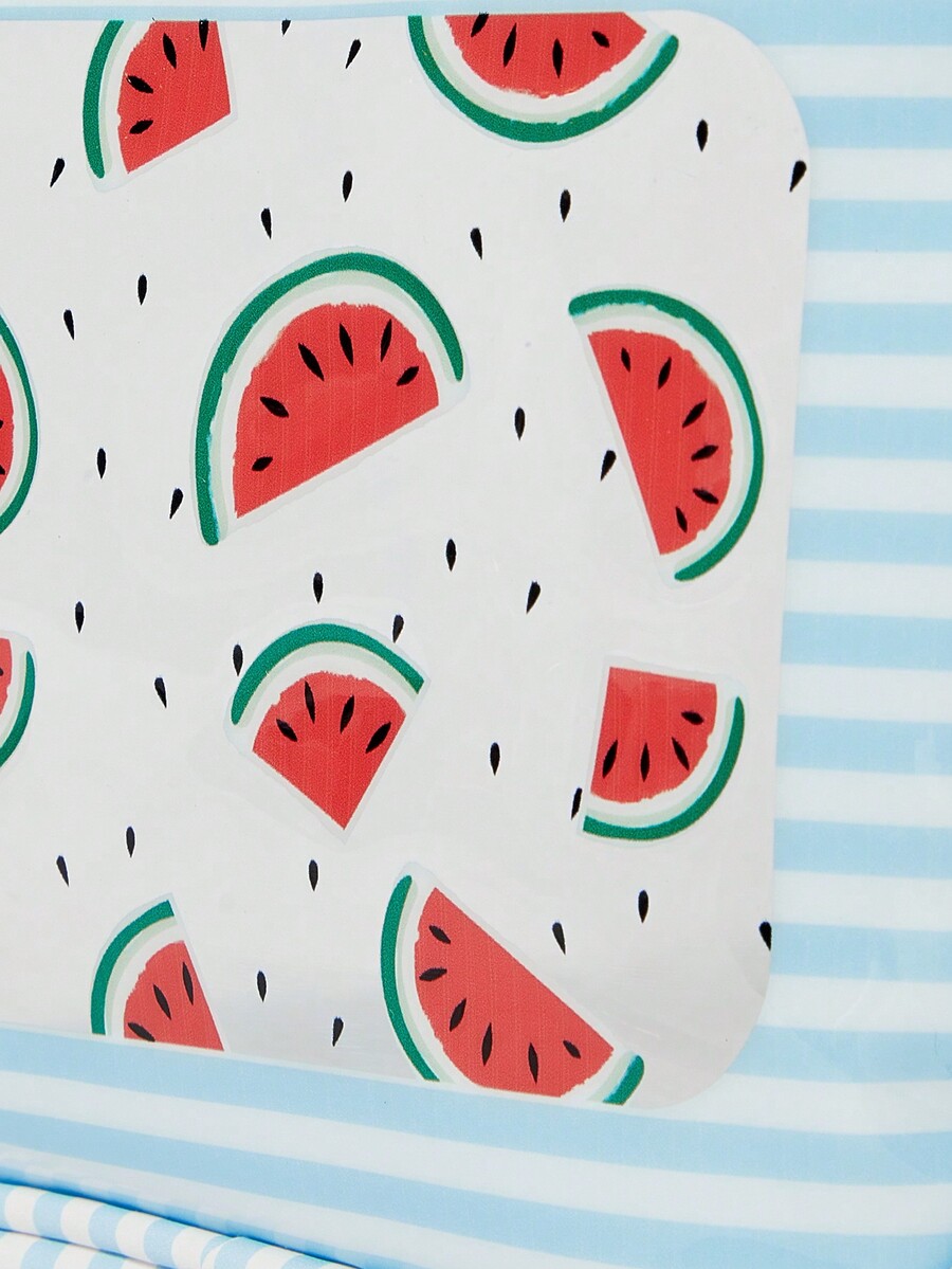 Kawaii Borsa da trucco portatile di grande capacità con stampa a cartone animato di anguria e finestra trasparente per donne, 225772