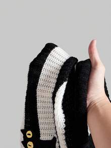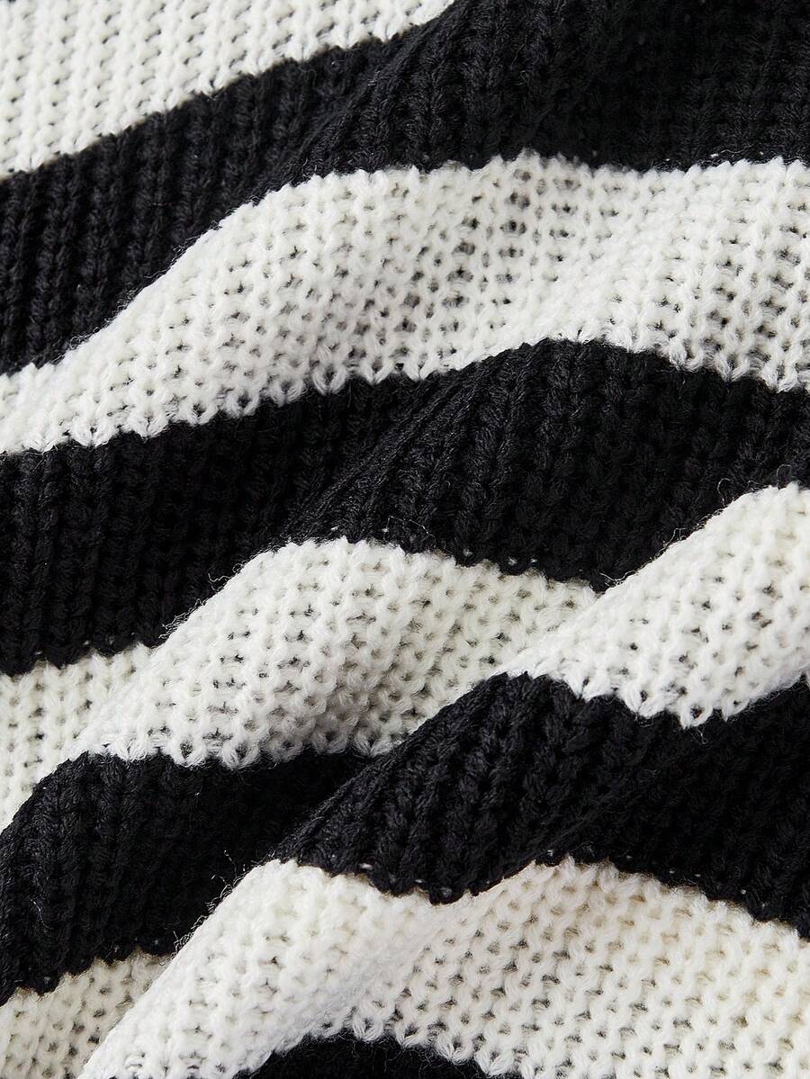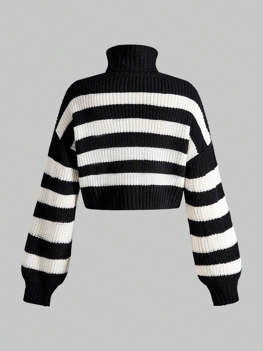 Kawaii Maglione a collo alto casual e carino con ricamo di gatto nero e righe per ragazze