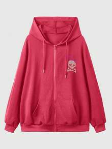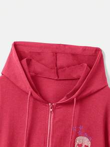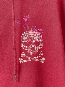 Kawaii Felpa con cappuccio casual con strass a forma di teschio, autunnale