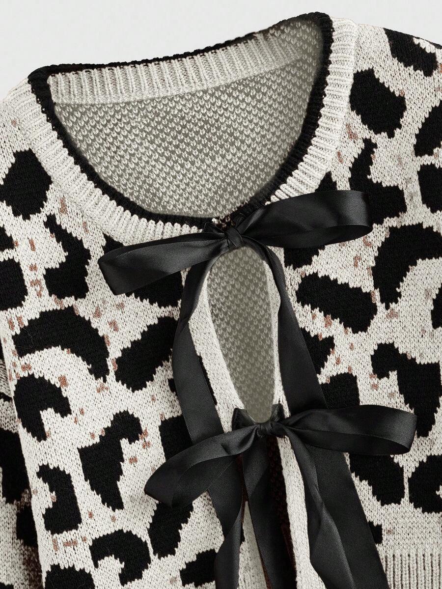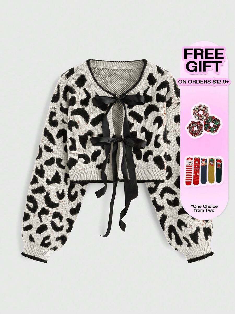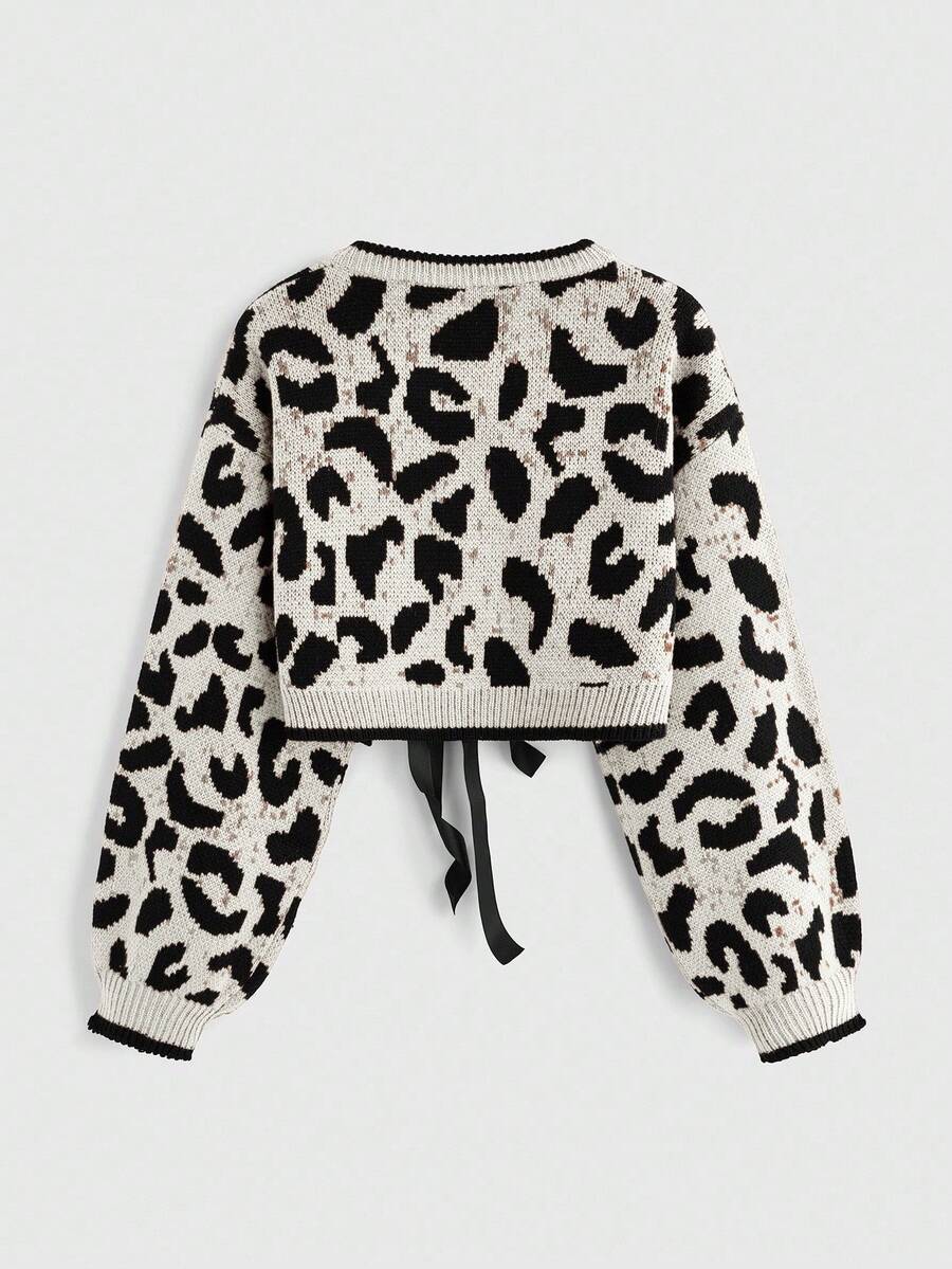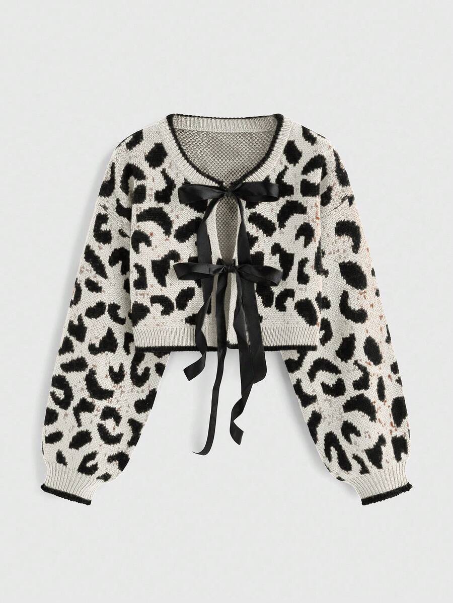 Kawaii Cardigan casual e versatile da donna con stampa leopardata e fiocco in stile Y2K
