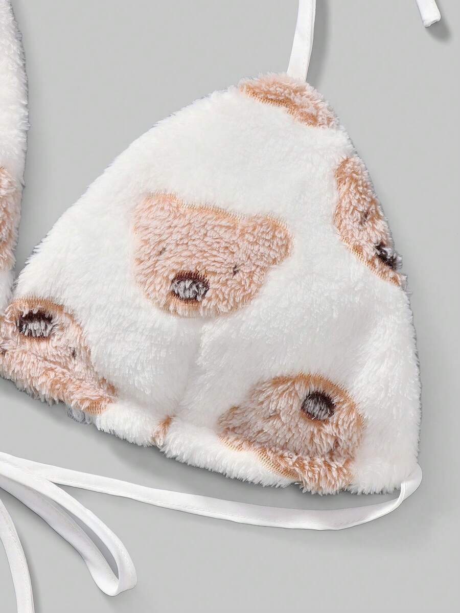 Kawaii Set pigiama casual in flanella con stampa di orsetti, composto da top a triangolo con coulisse e pantaloncini