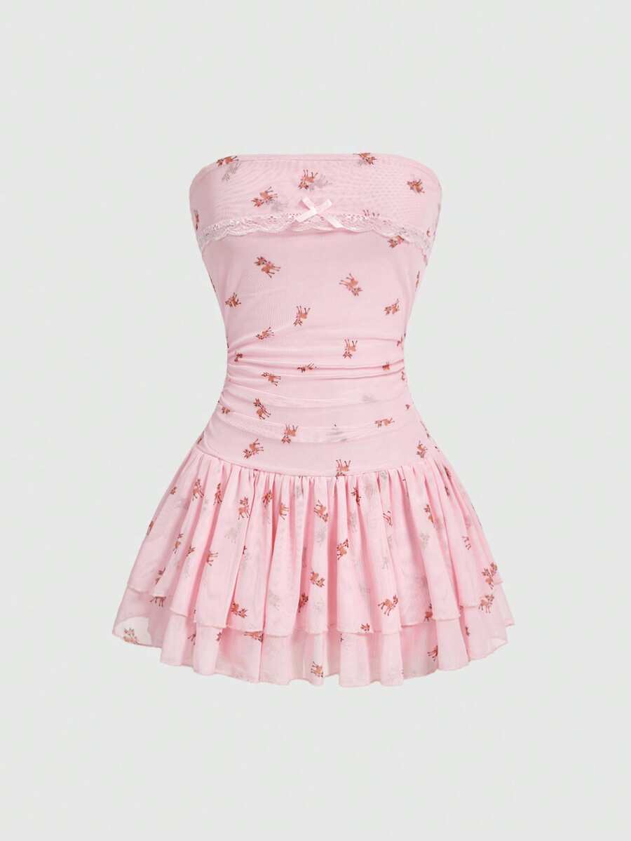 Kawaii Abito a ruota con stampa di cervi carino per donna