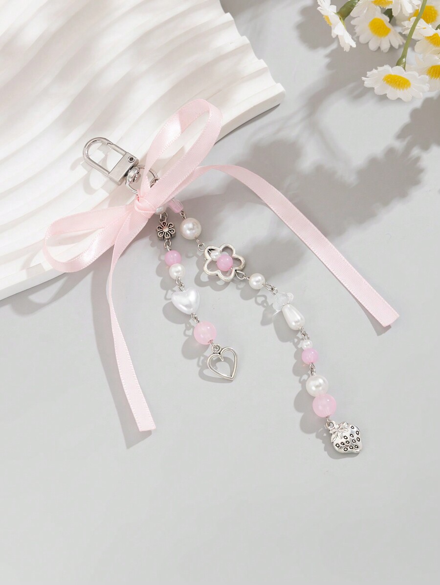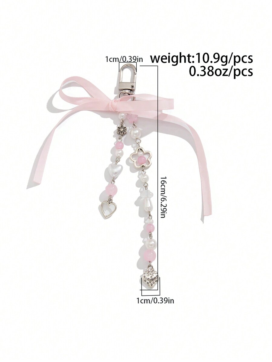 Kawaii Portachiavi con frange, finta perla e decorazione a forma di fragola/cuore/fiocco, adatto per borsa, telefono, miglior amico, regalo per le vacanze