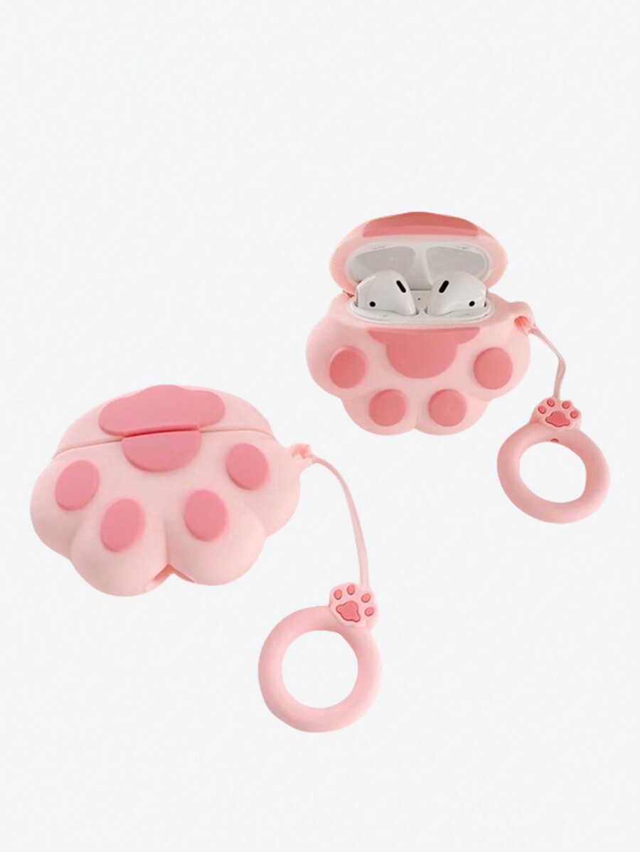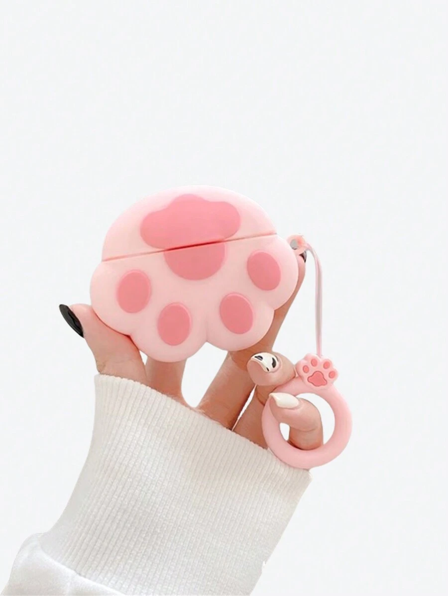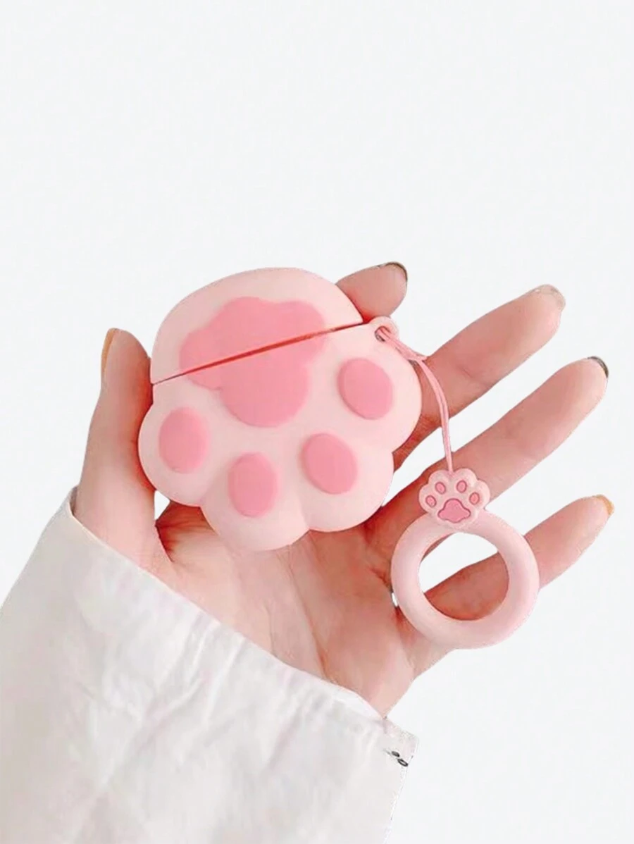 Kawaii Custodia per auricolari carina e dolce con pendente a catena a forma di zampa di gatto rosa, custodia a molla a spirale compatibile con Airpods 1/2 Pro