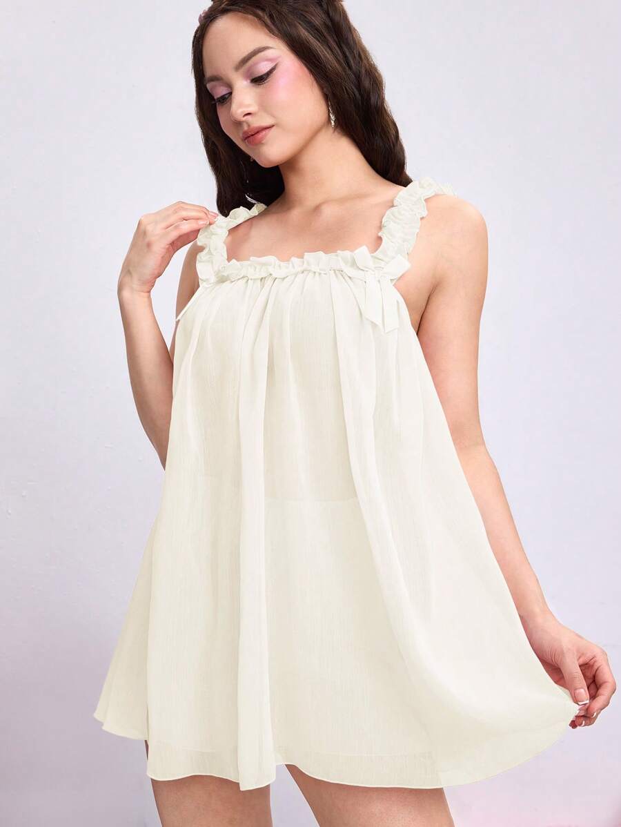 Set di abiti per bambolina kawaii: vestito baby doll in chiffon ampio e trasparente con fiocco, canotta e shorts da pigiama