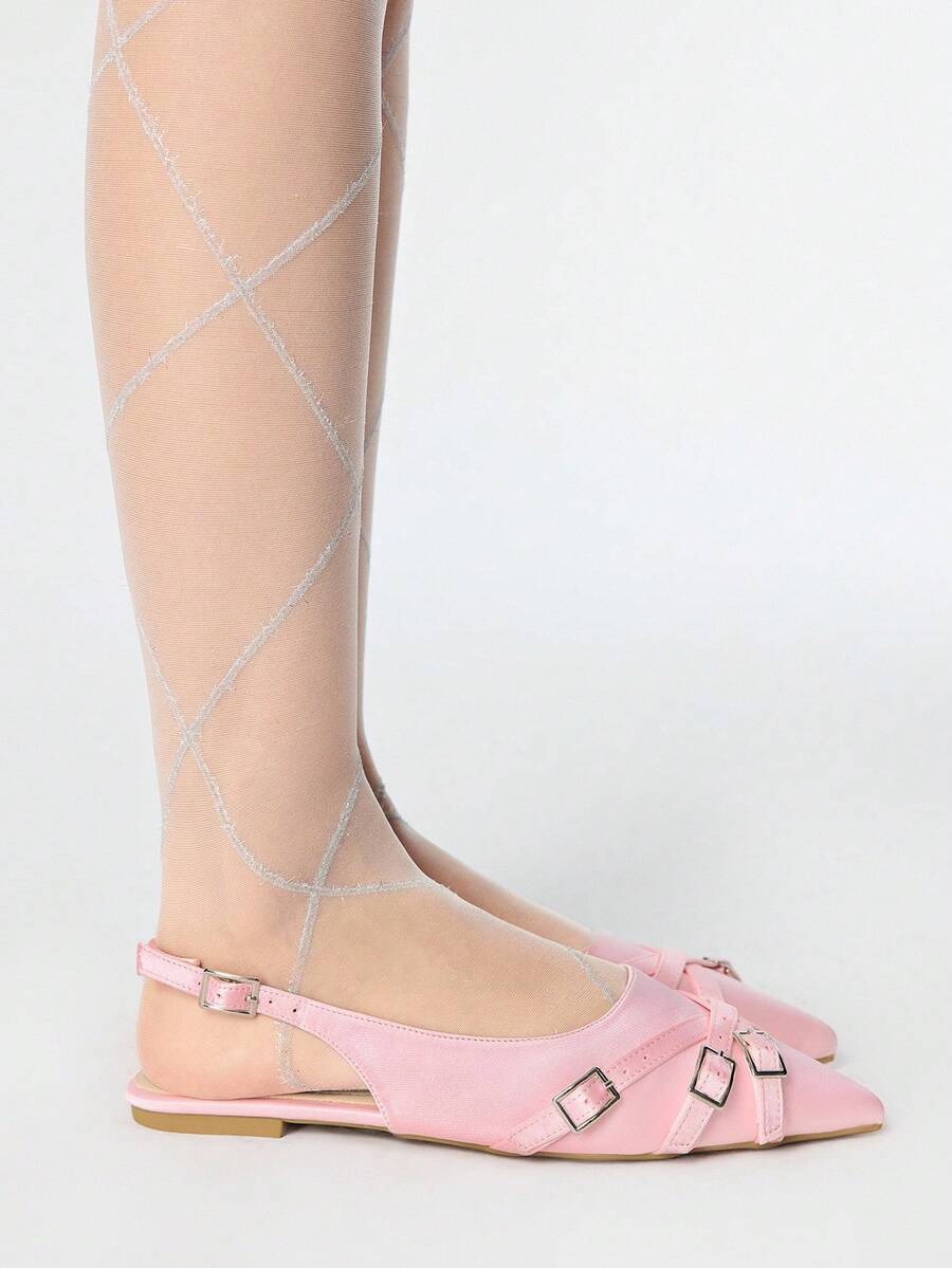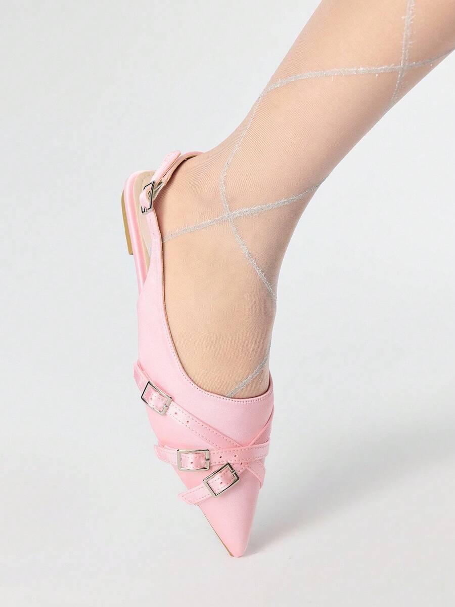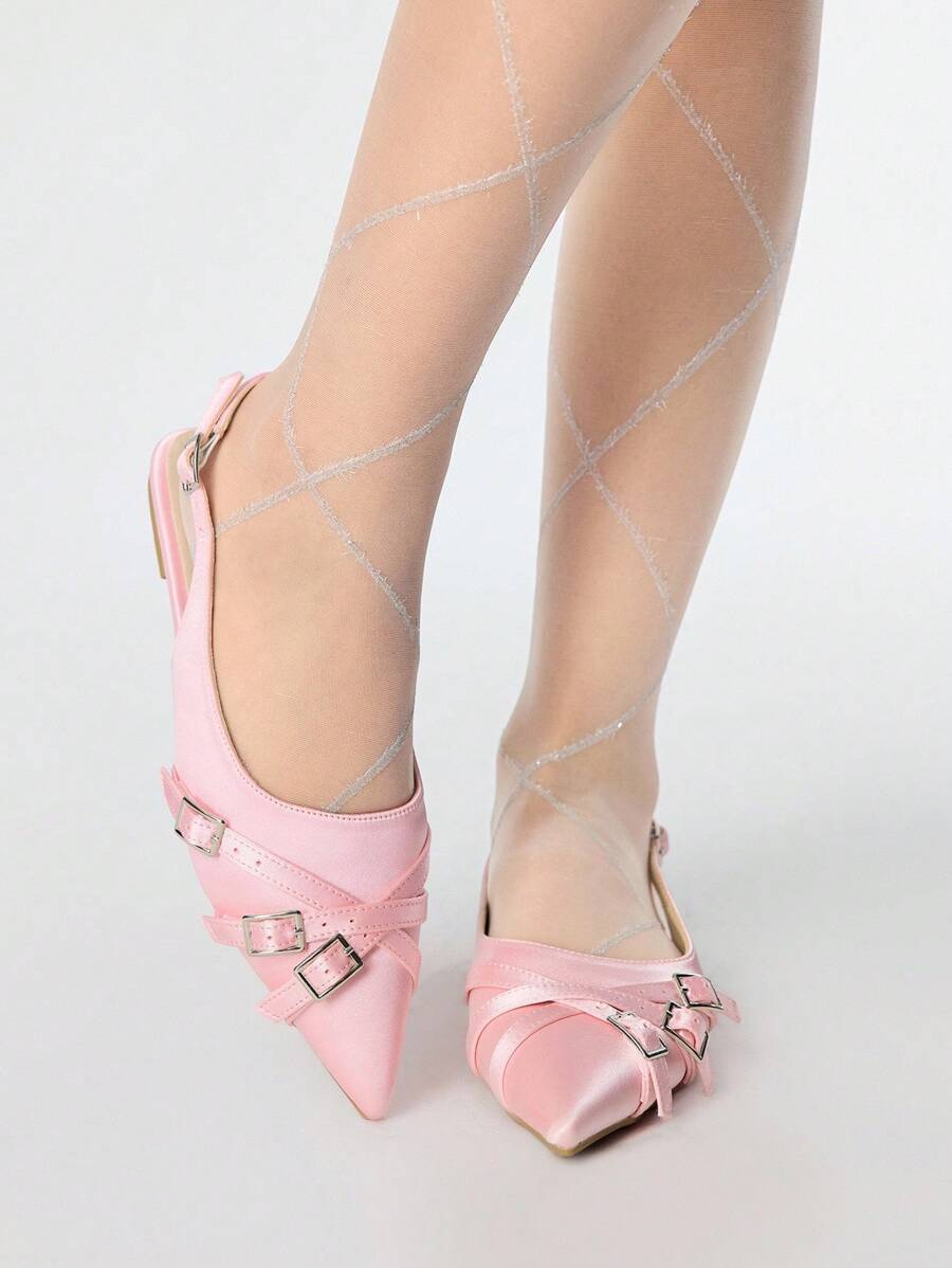 Kawaii Scarpe piatte eleganti e casual con fibbia, design a punta, scarpe da donna stile gotico in raso di seta rosa cipria, adatte per feste, uso quotidiano, abiti da sera