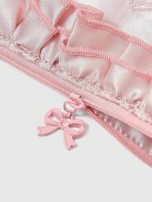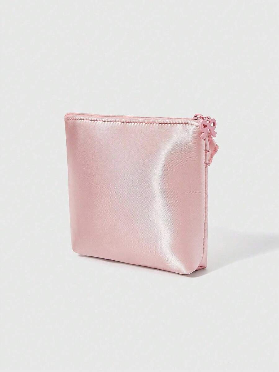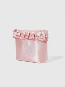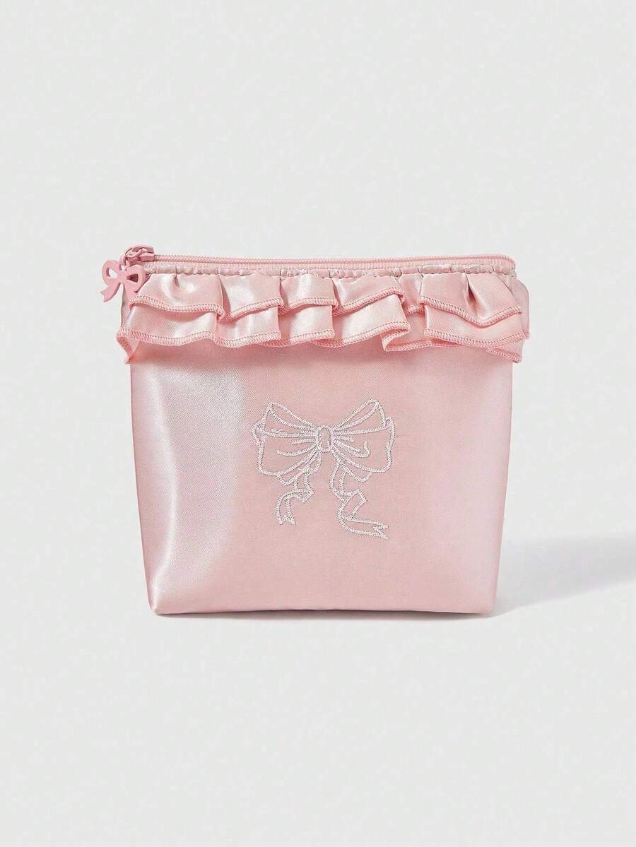 Kawaii Scatola portafazzoletti, borsa trucchi/porta accessori da viaggio ricamata con fiori e fiocco, rosa, regalo/portamonete