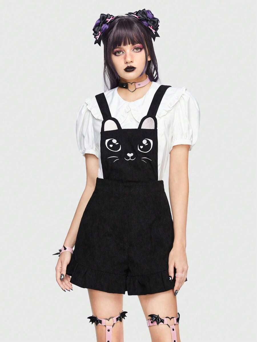 Kawaii Tutina salopette con ricamo con modello di cartone animato senza top
