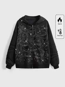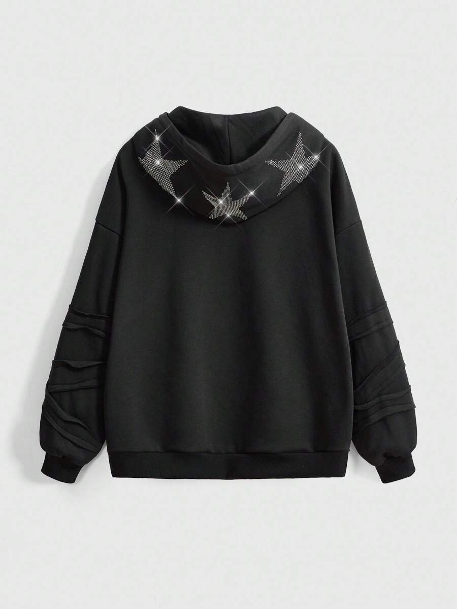 Felpa con cappuccio oversize in pile con decorazioni di stelle e strass, stile kawaii per ragazze