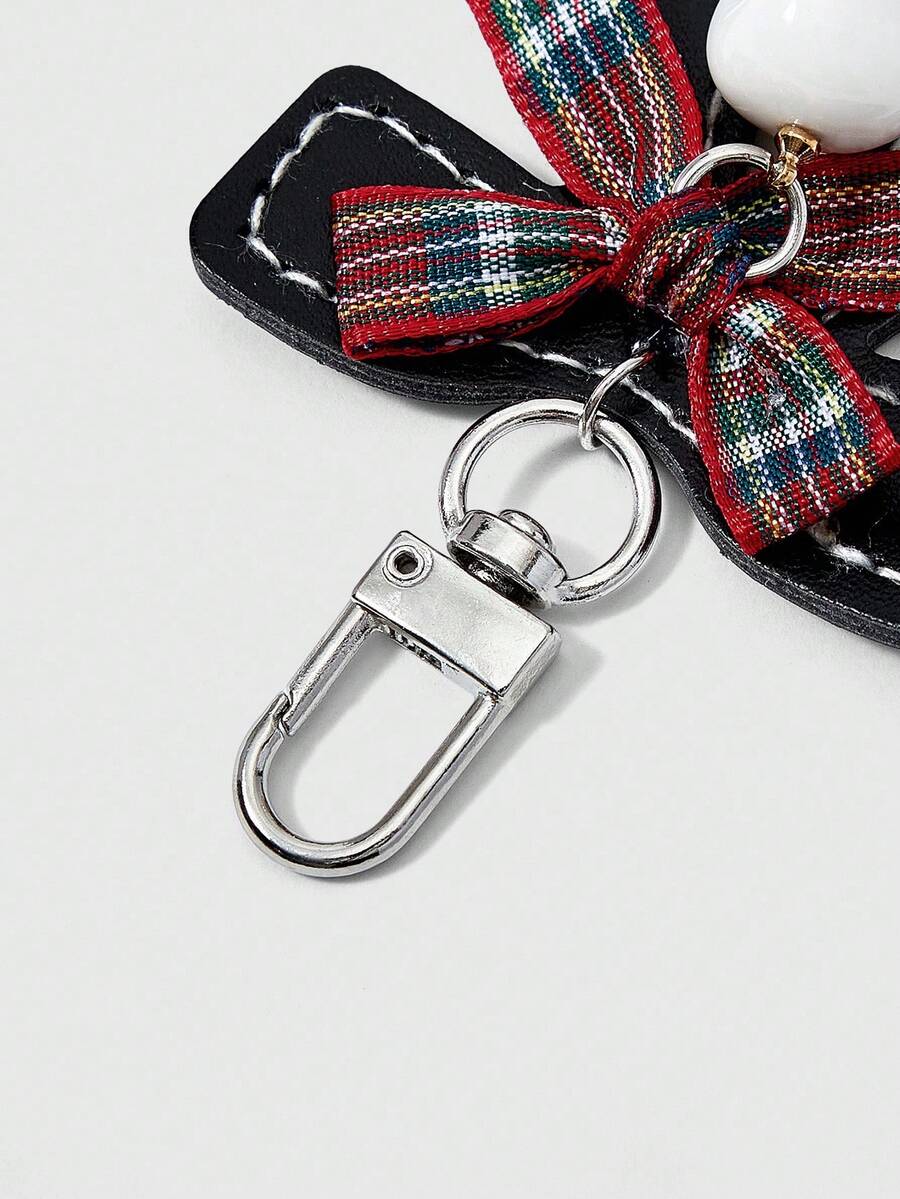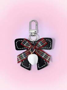 Kawaii Ciondolo vintage a forma di denti con fiocco in stile gotico punk, a quadri rosso e nero, portachiavi o accessorio per borsa in stile Y2K