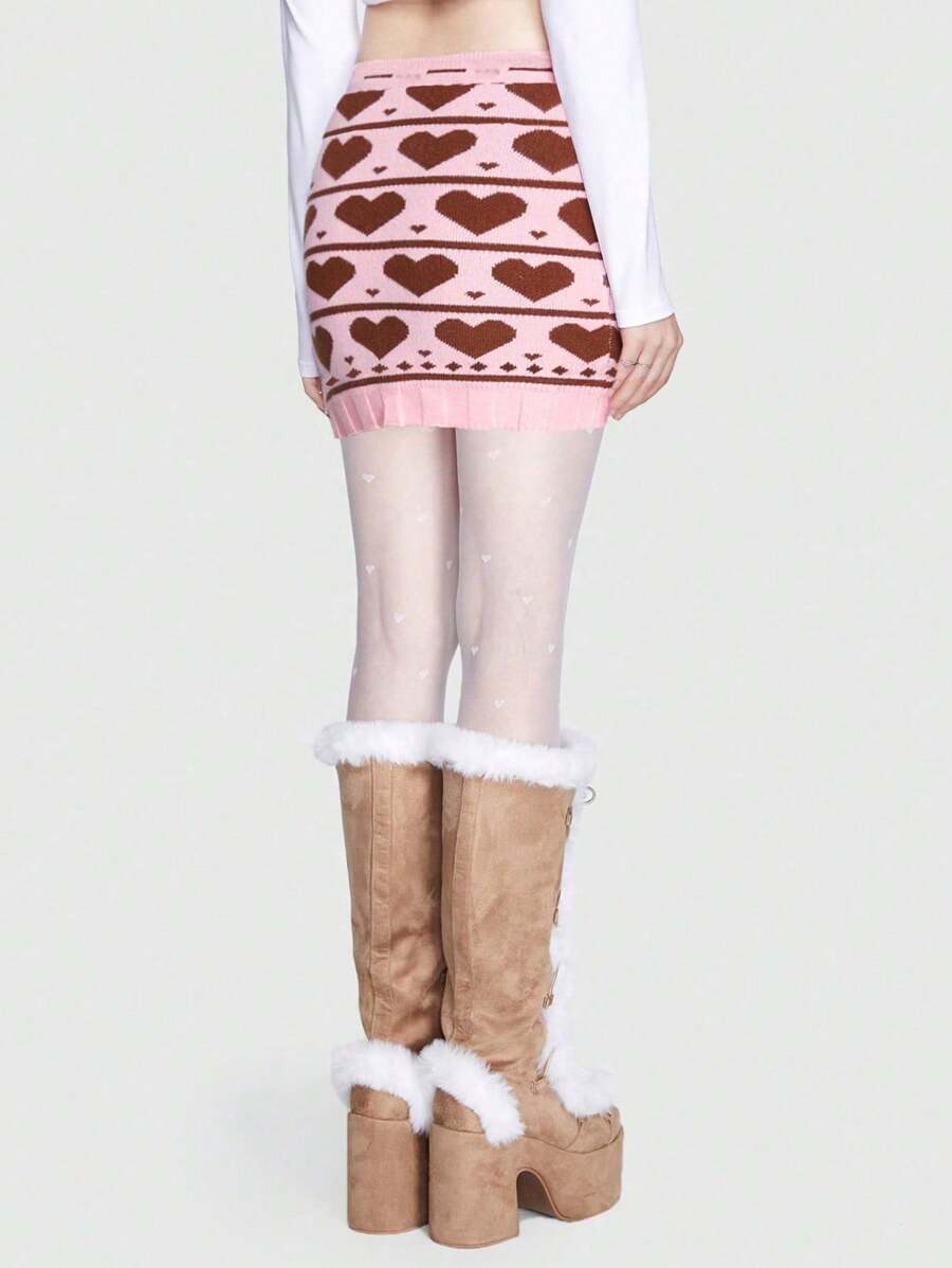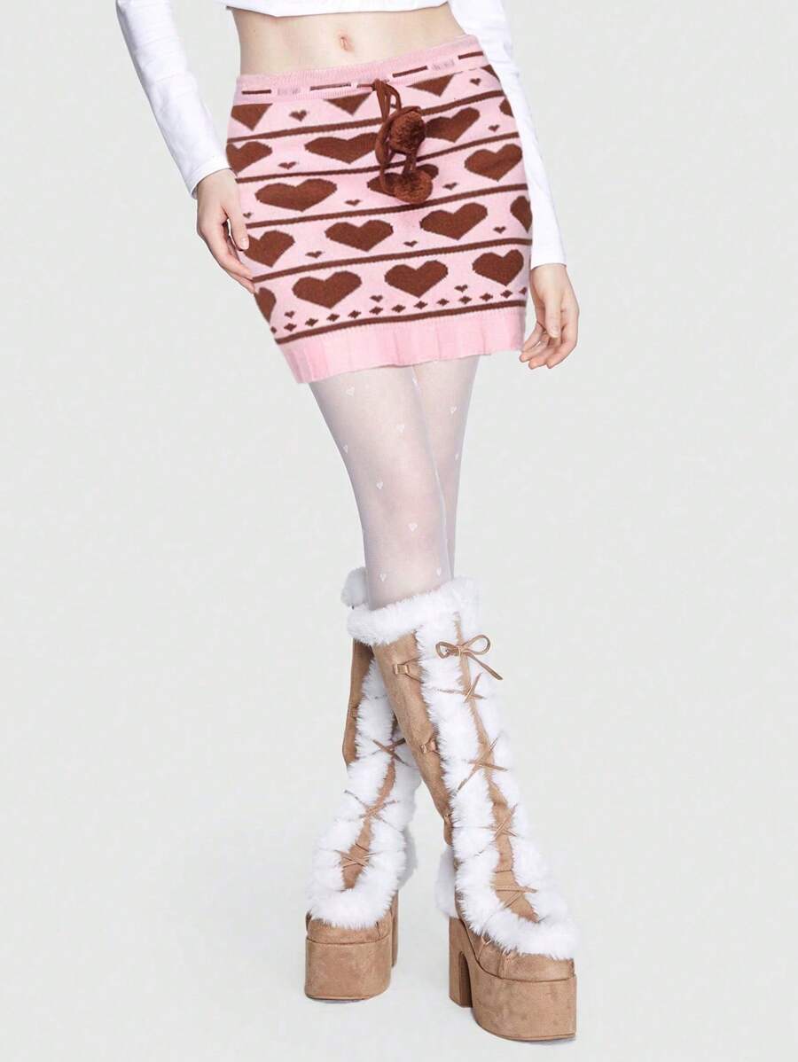 Kawaii Gonna in maglia modello a cuore con coulisse a vita