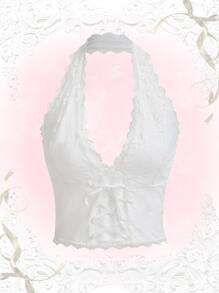 Kawaii Top a fascia con lacci e pizzo a contrasto di stile Himekaji, adatto per la scuola