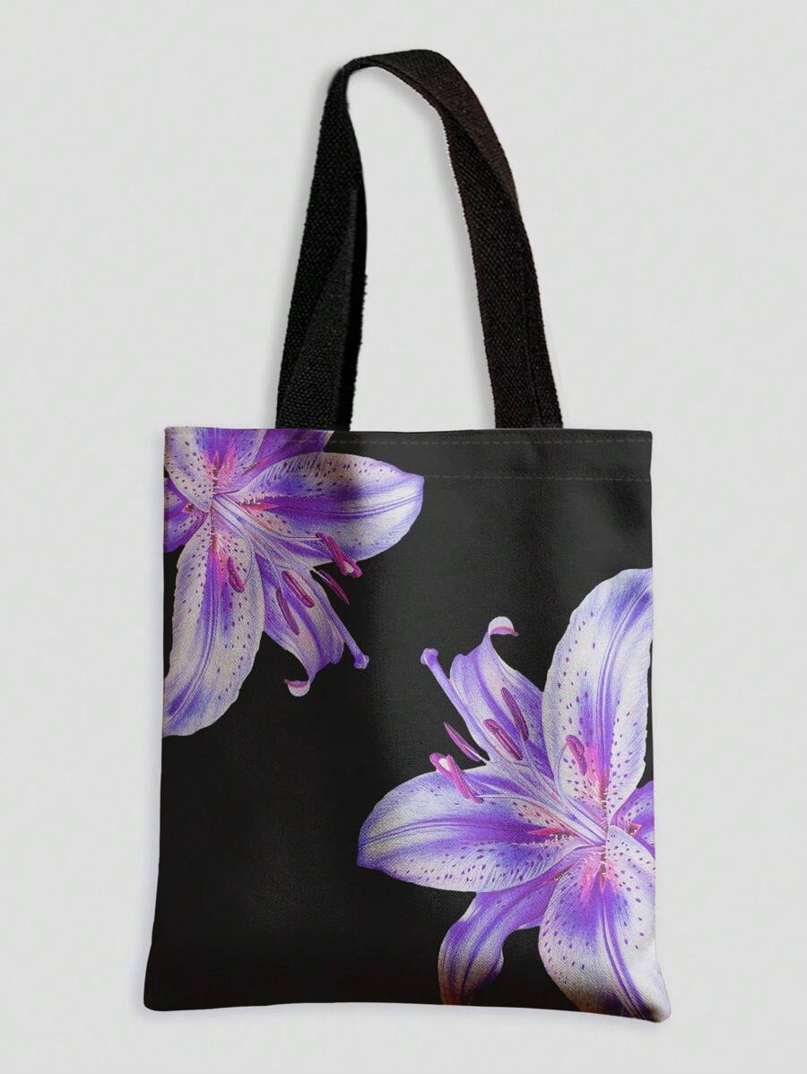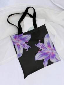 Kawaii Borsa a spalla in tela reversibile con stampa floreale grande, versatile per andare al lavoro e in vacanza