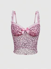 Kawaii Canotta da donna con stampa leopardata, stile Harajuku, dolce, carina, sexy, adatta per feste, scuola, Capodanno, con spalline