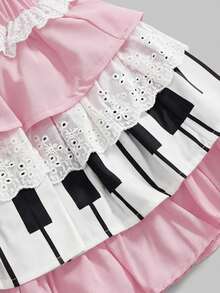 Kawaii Gonna a ruota stile Lolita con stampa dolce e carina di tastiera di pianoforte, per donne