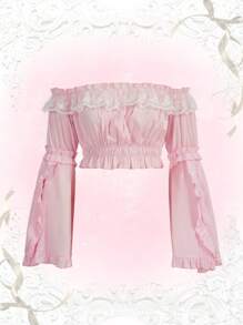 Kawaii Camicetta con spalle scoperte con volant bustino arricciato