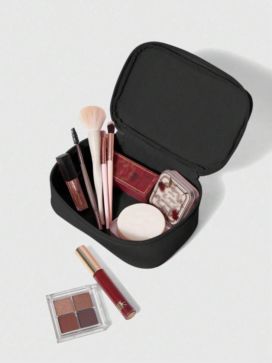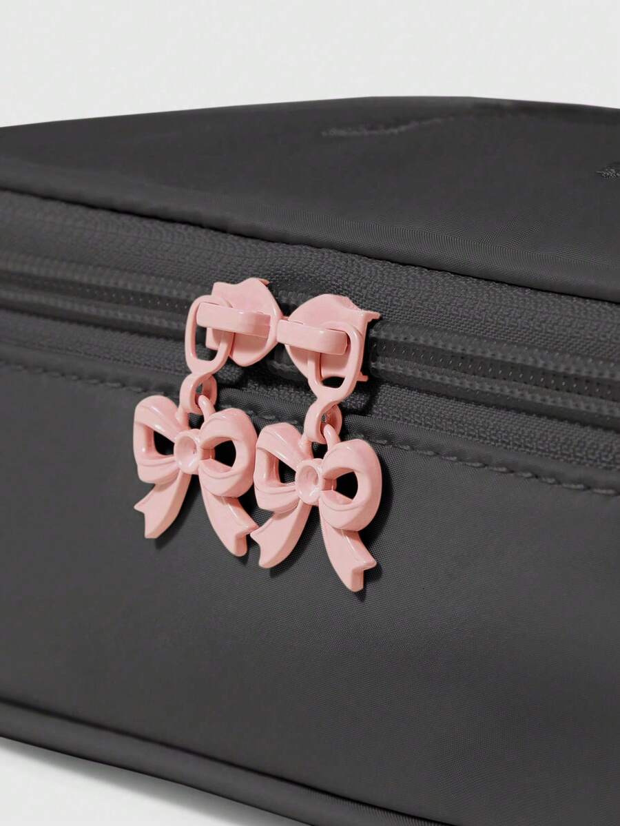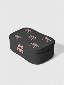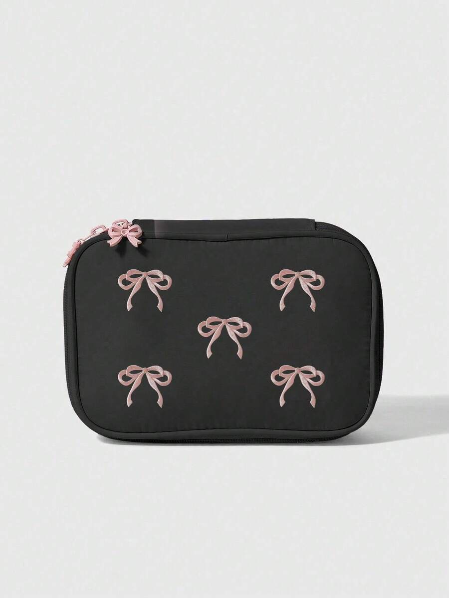 Kawaii Borsa cosmetica con fiocco rosa ricamato, organizer da viaggio portatile