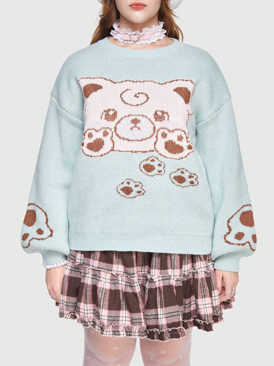Kawaii Taglie Forti Maglione con modello di cartone animato spalle cadenti