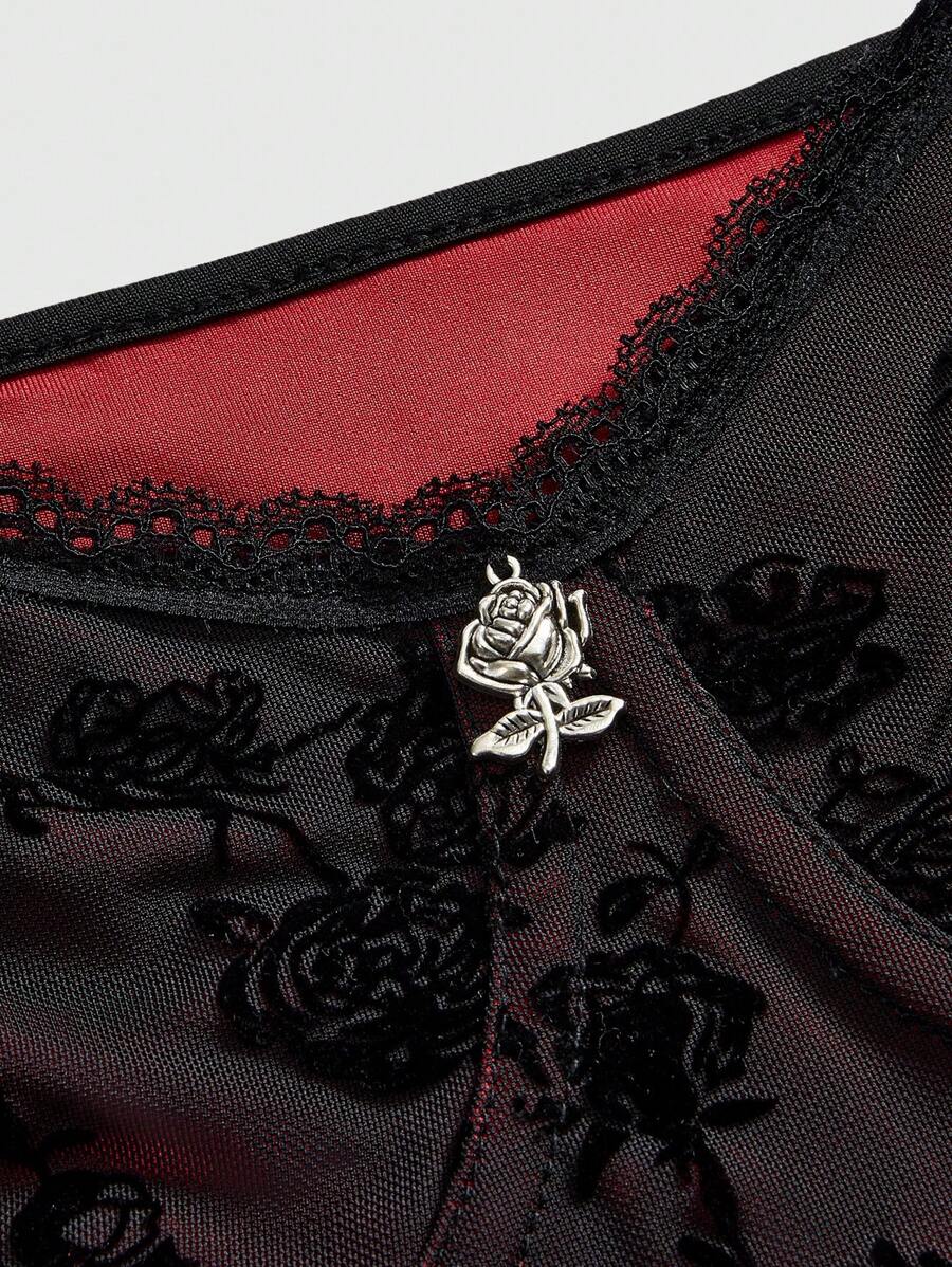 Kawaii Reggiseno a fascia tagliato con pizzo e motivo a rose bicolore, modello oversize per il giorno di San Valentino