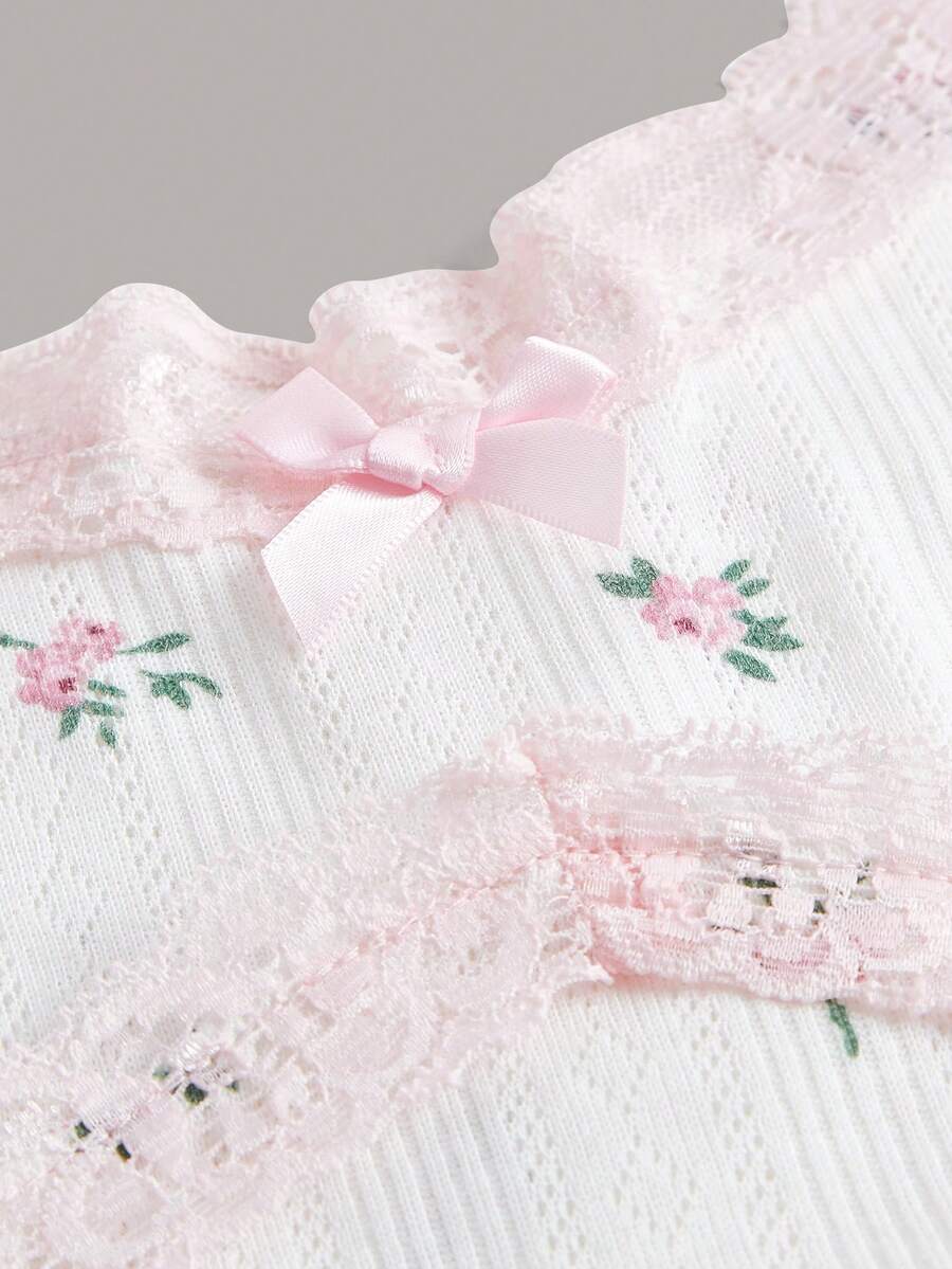 Kawaii Canottiera con pizzo a fiori ditsy taglie comode per donne, per la scuola