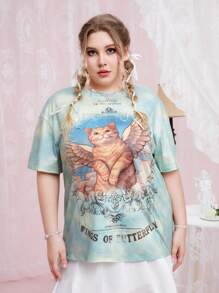 Kawaii Taglie Forti Maglietta con spalla cadenti tie dye con grafica slogan e fumetto