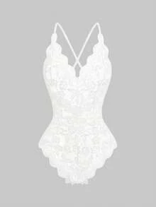 Kawaii Body romantico di San Valentino, sexy, in pizzo, con scollo a V, volant e spalline regolabili