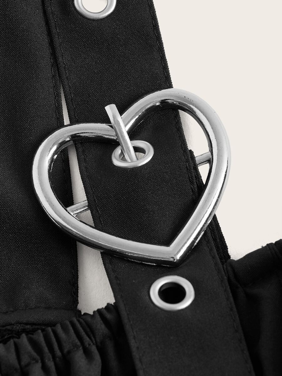 Kawaii Camicetta corta monocolore con spalle scoperte occhielli dettaglio fibbia