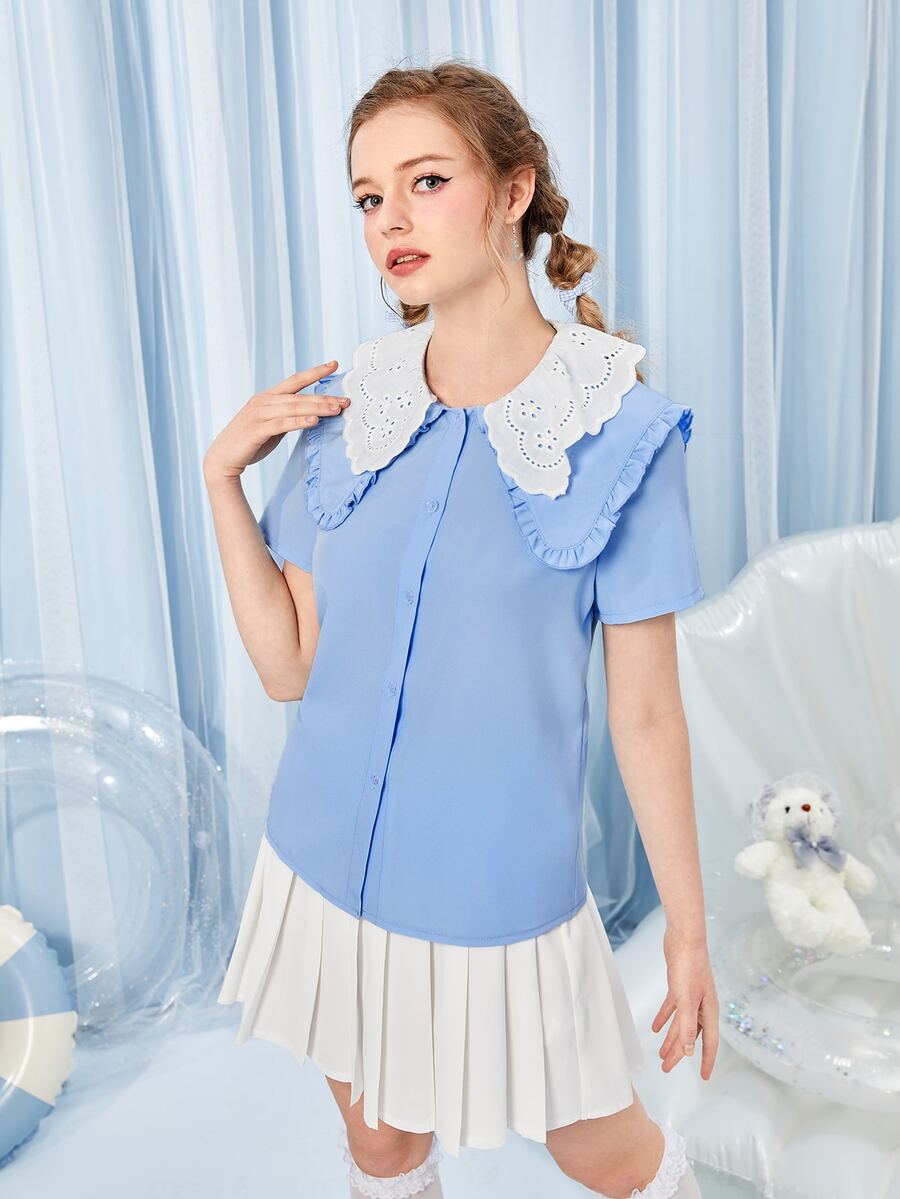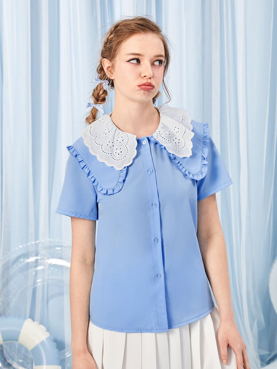 Kawaii Camicia collo pronunciato con volant con bottone frontale
